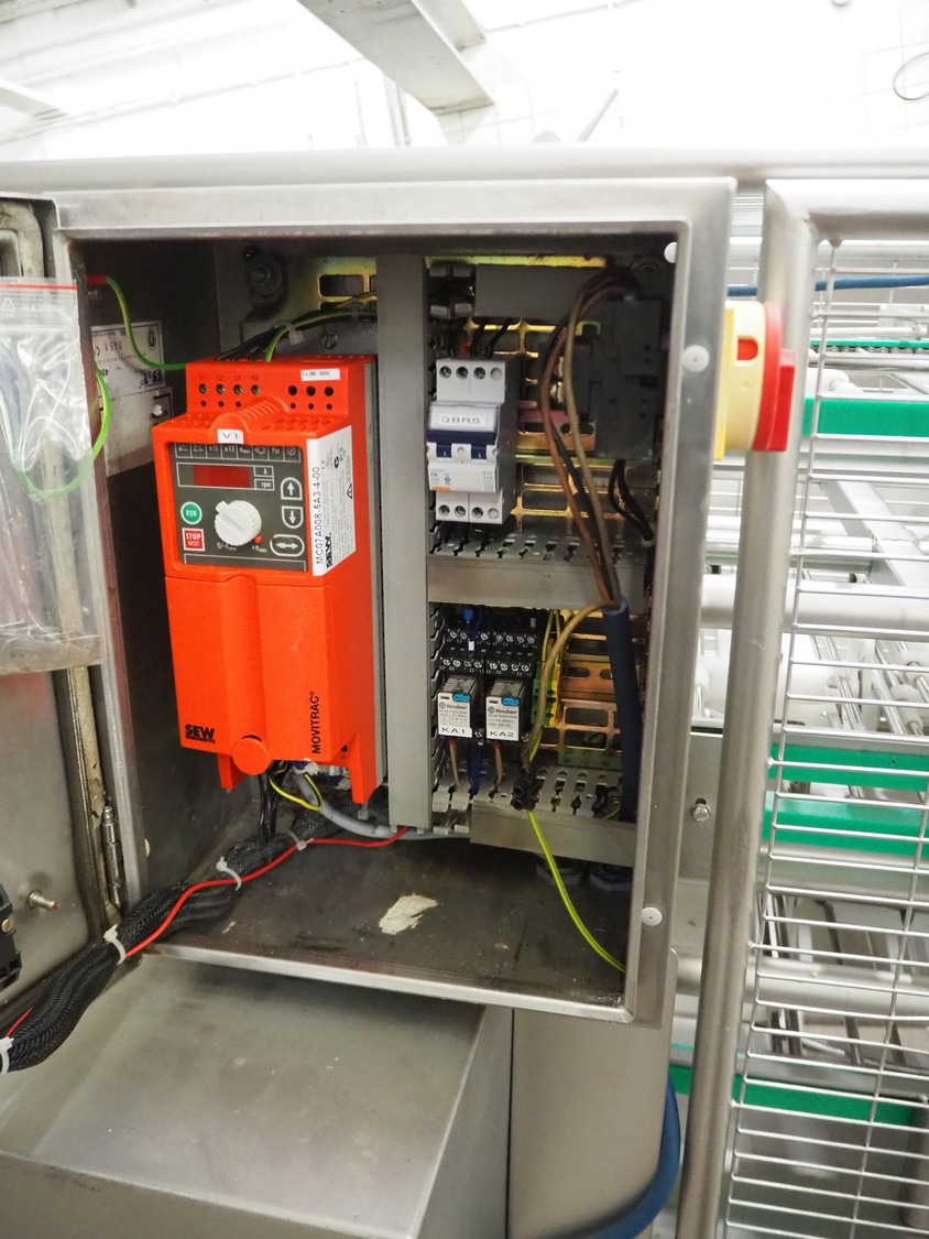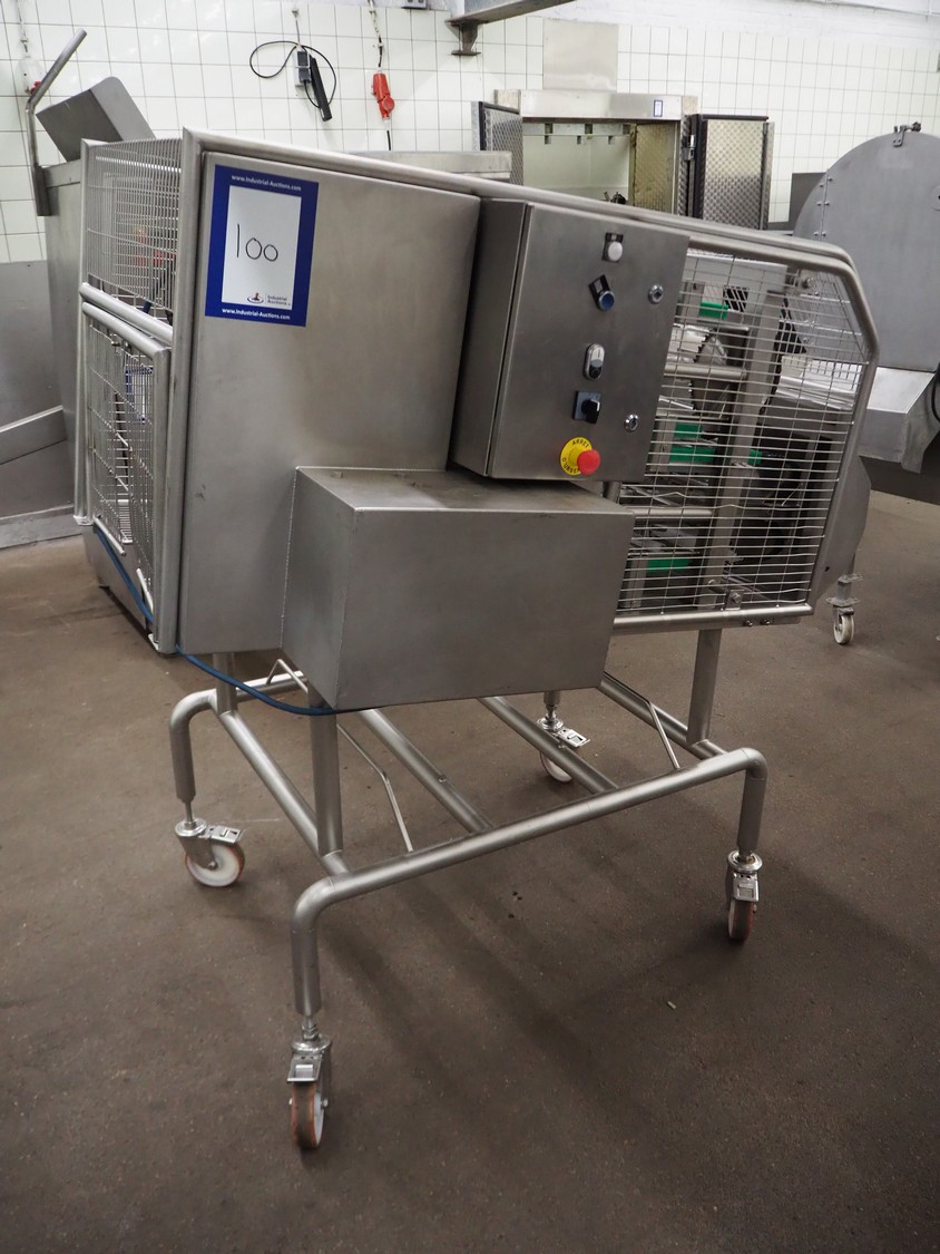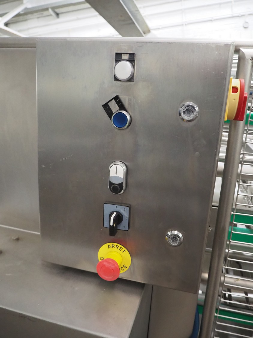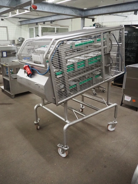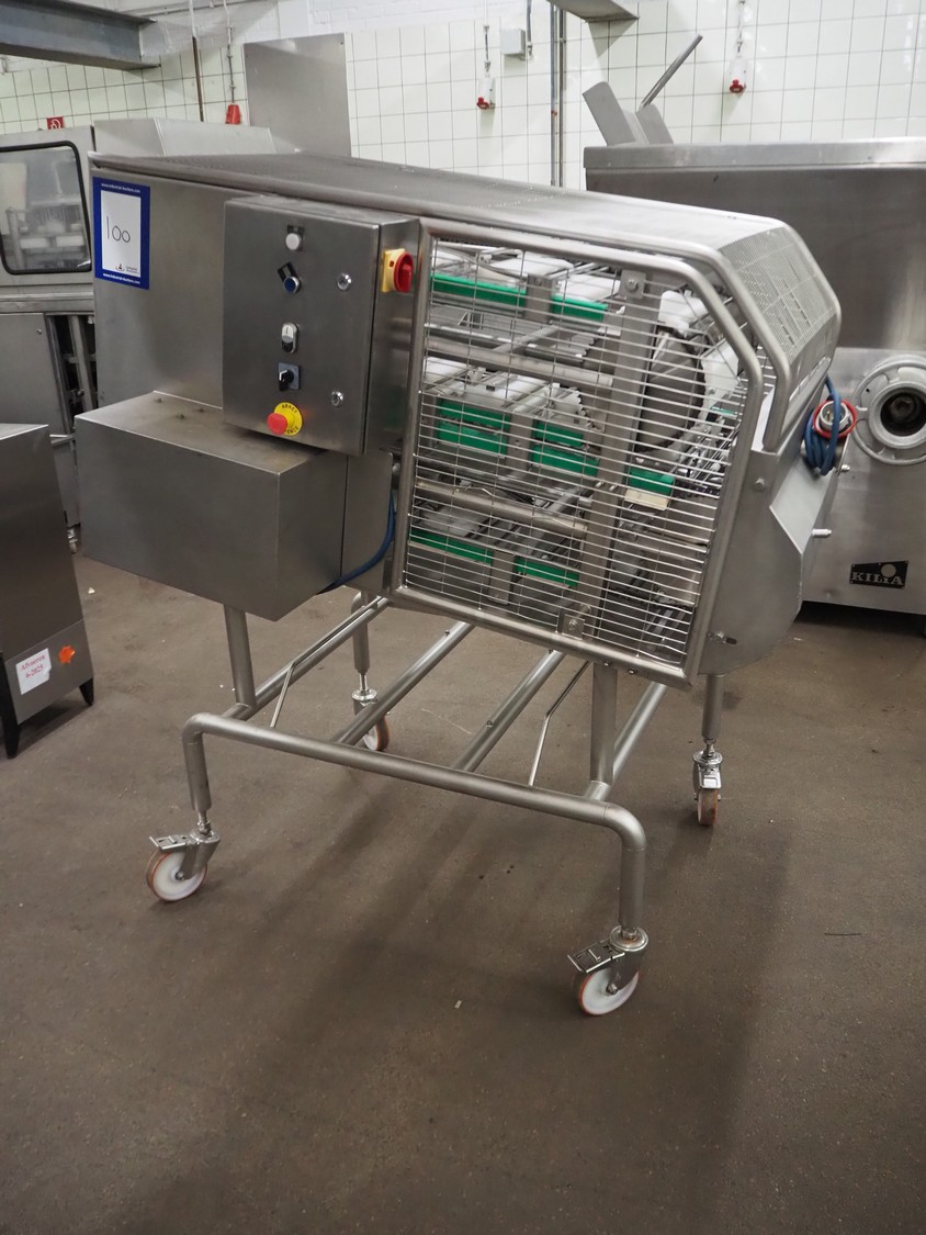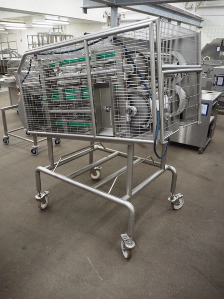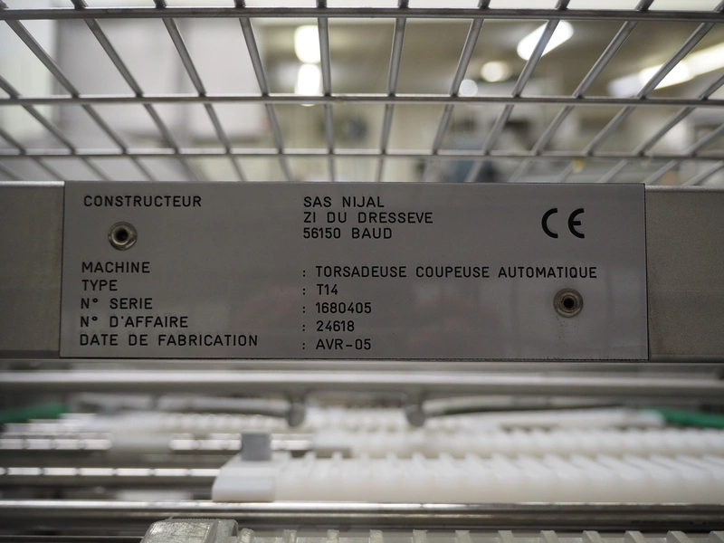 SAS NIJAL mobile twisting and cutting machine for sausages, machine: Torsadeuse Coupeuse Automatique, type: T14, serial number: 1680405, year of construction: AVR-05, dimensions: 1500 mm x 1200 mm x 1770 mm.