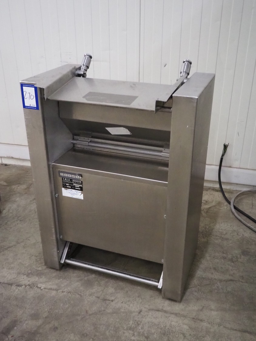 C.M.I.A. - BODSON mobile skinning machine, type: D112, serial number: 327, year of construction: 11-06-82, 220/380 V, working width: 440 mm, total dimensions: 710 mm x 450 mm x 1000 mm. Incomplete.
