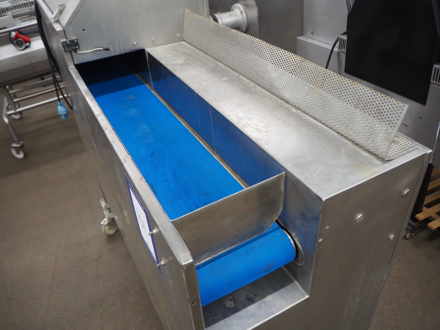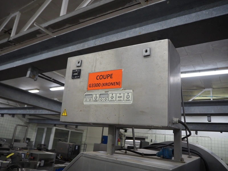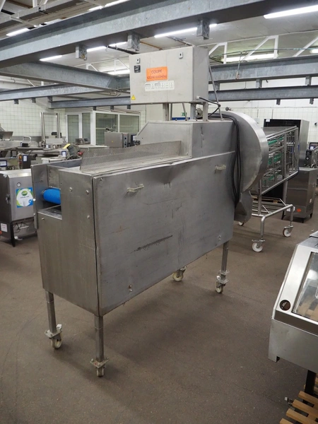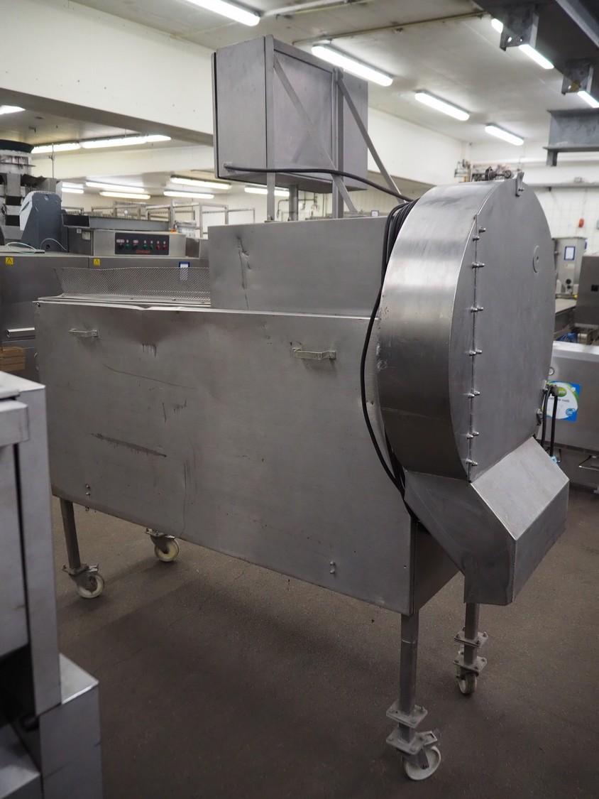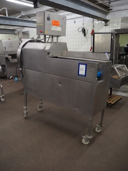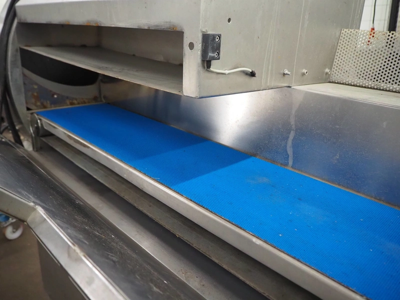 Eillert B.V. mobile slicer, type G3300, plastic belt, belt width: 240 mm, total dimensions: 2100 mm x 900 mm x 2250 mm. Kronen control system.