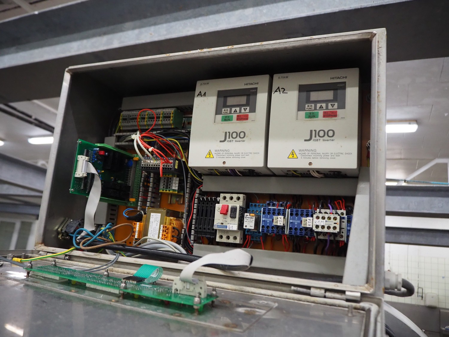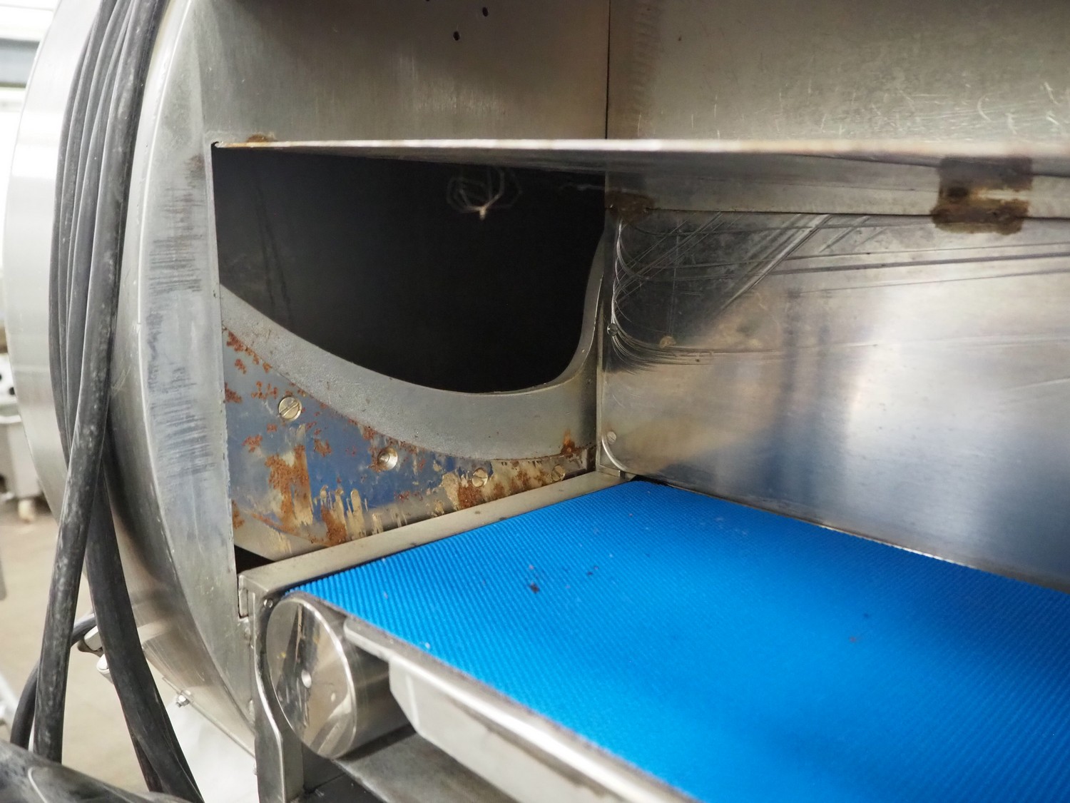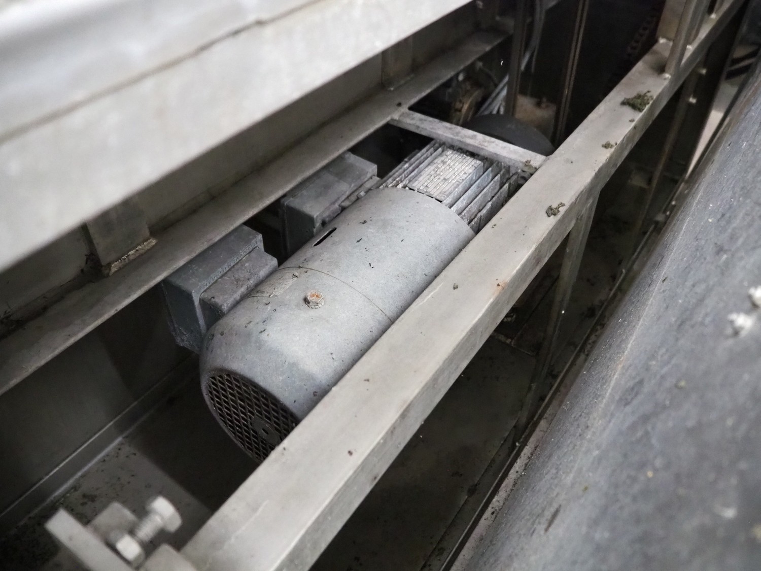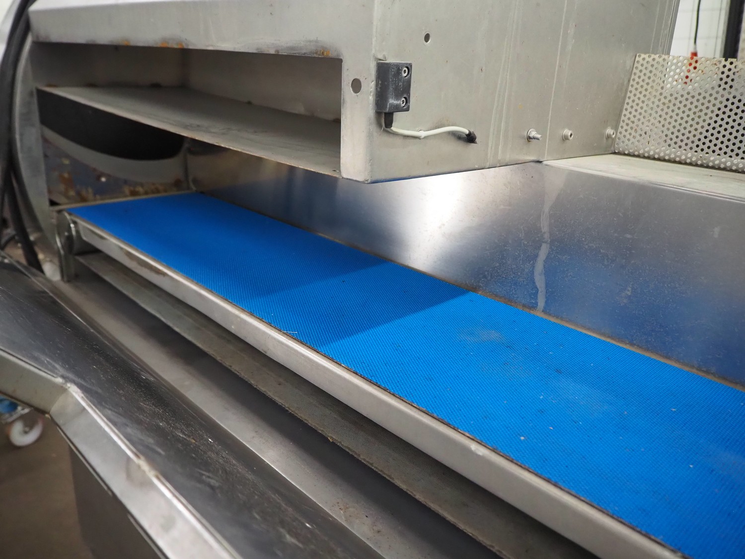 Eillert B.V. mobile slicer, type G3300, plastic belt, belt width: 240 mm, total dimensions: 2100 mm x 900 mm x 2250 mm. Kronen control system.