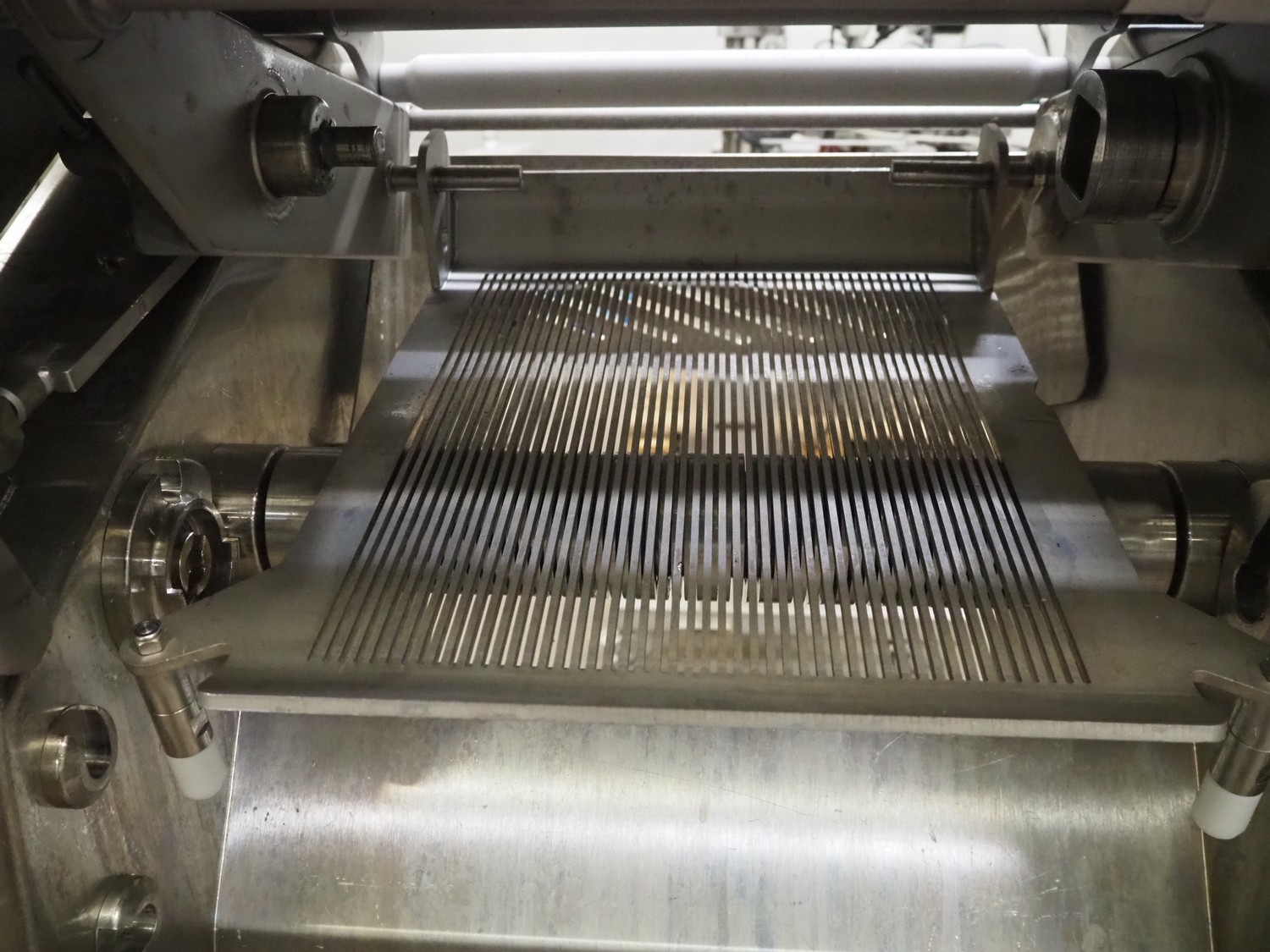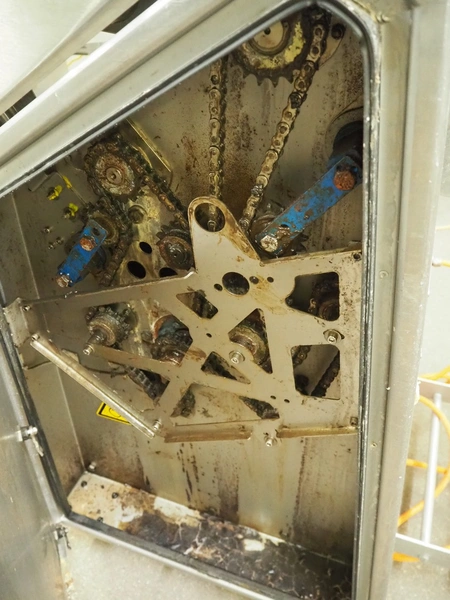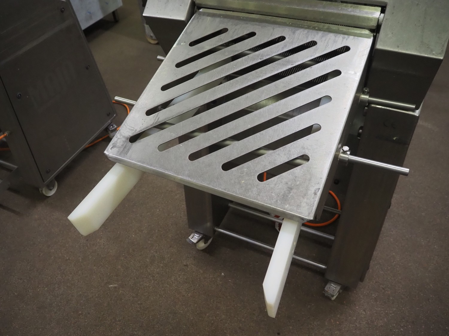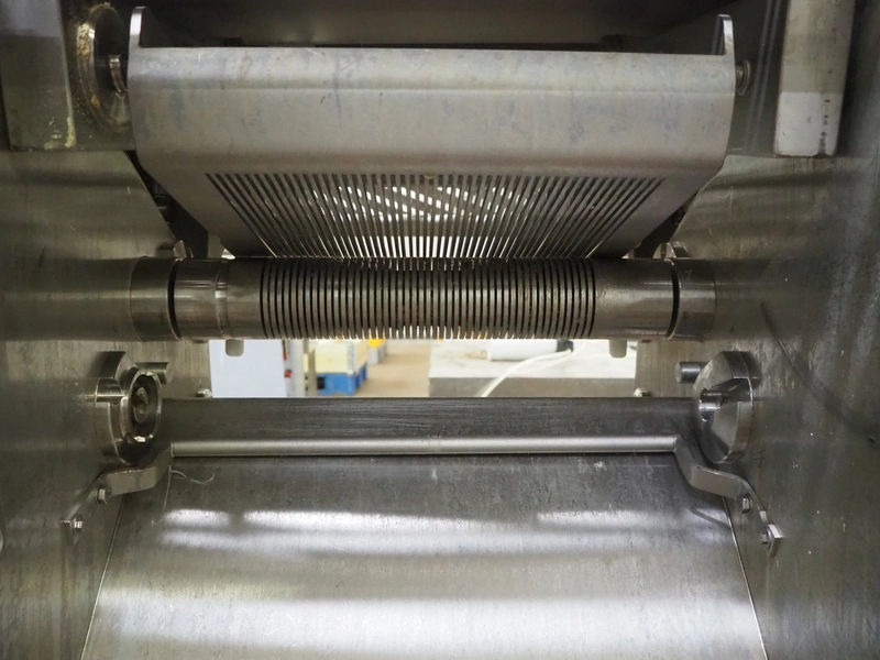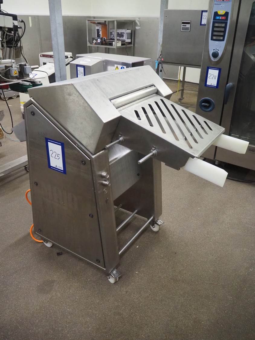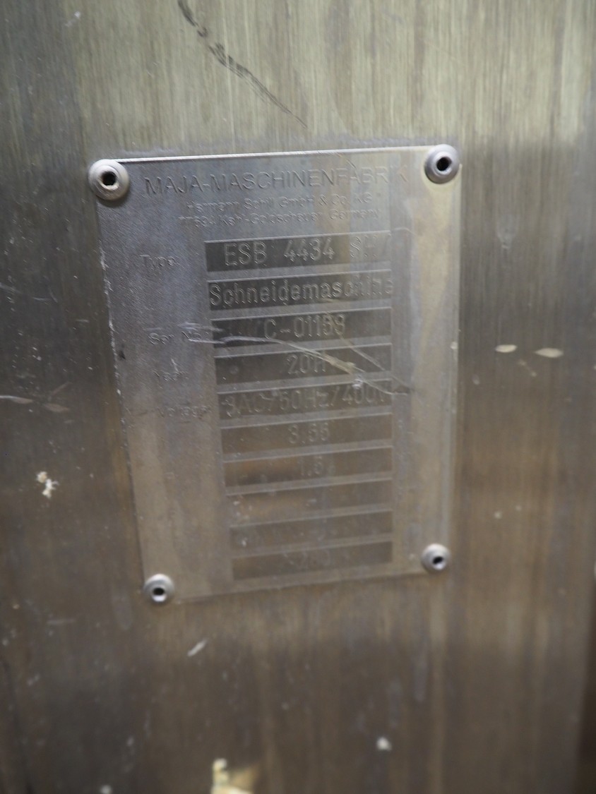 Maja Maschinenfabrik mobile strip cutter, type: ESB 4434 SH, serial number: C-01159, year of construction: 2011, 400 V, 3 Ph, 50 Hz, 3.55 A, 1.5 kW, working width: 440 mm, distance between knives: 0.5 mm, total dimensions: 1600 mm x 800 mm x 1300 mm. Incomplete, missing belts and knife.