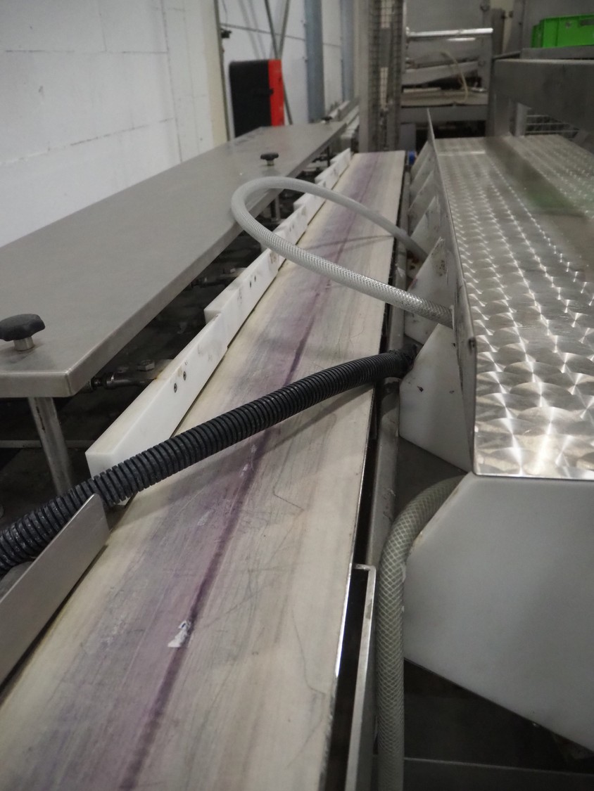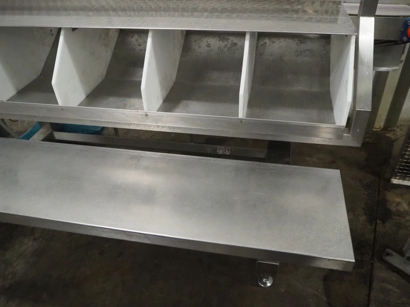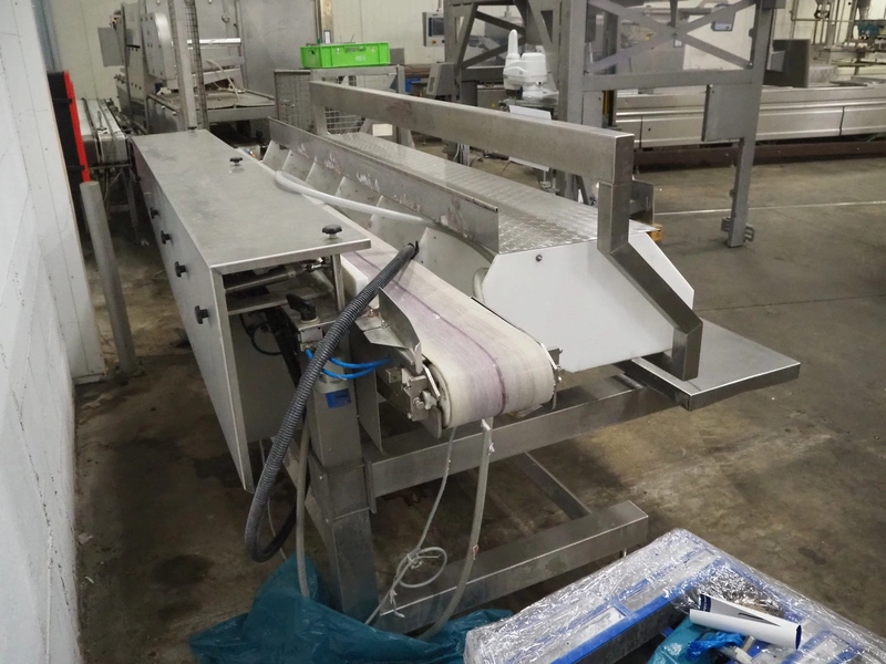 Sorting station with 6 rejectors, plastic belt, belt width: 200 mm, total dimensions: 2750 mm x 1600 mm x 1450 mm.