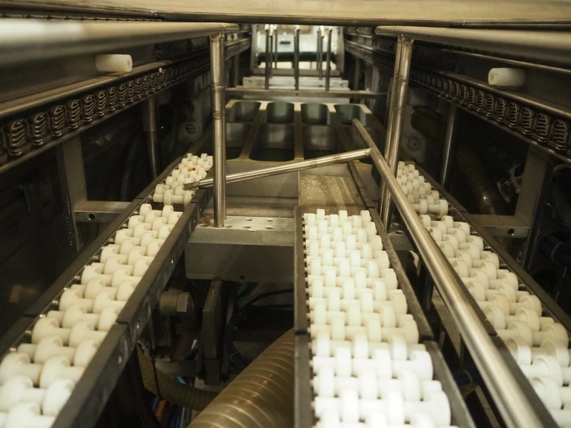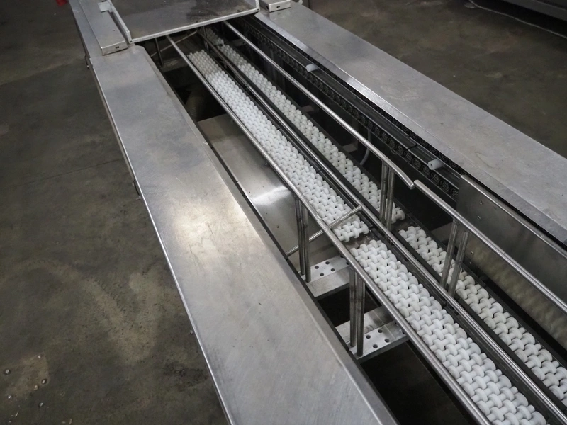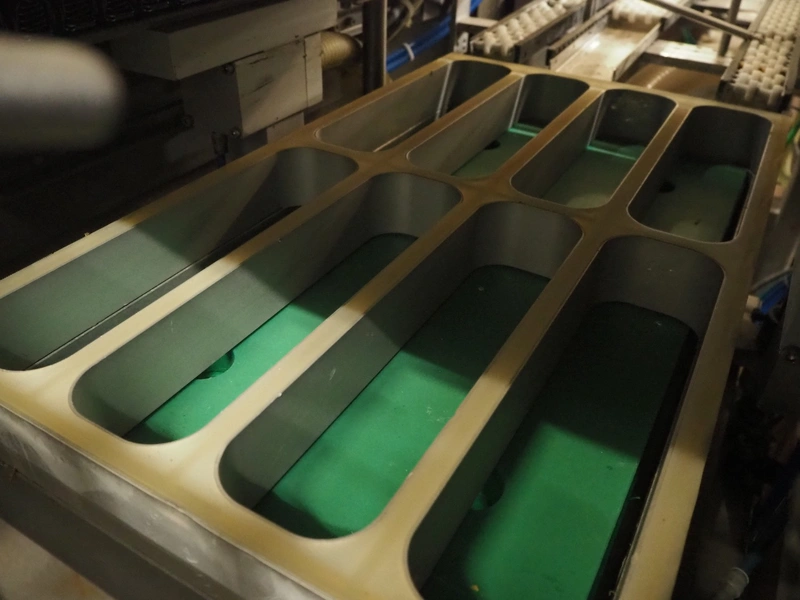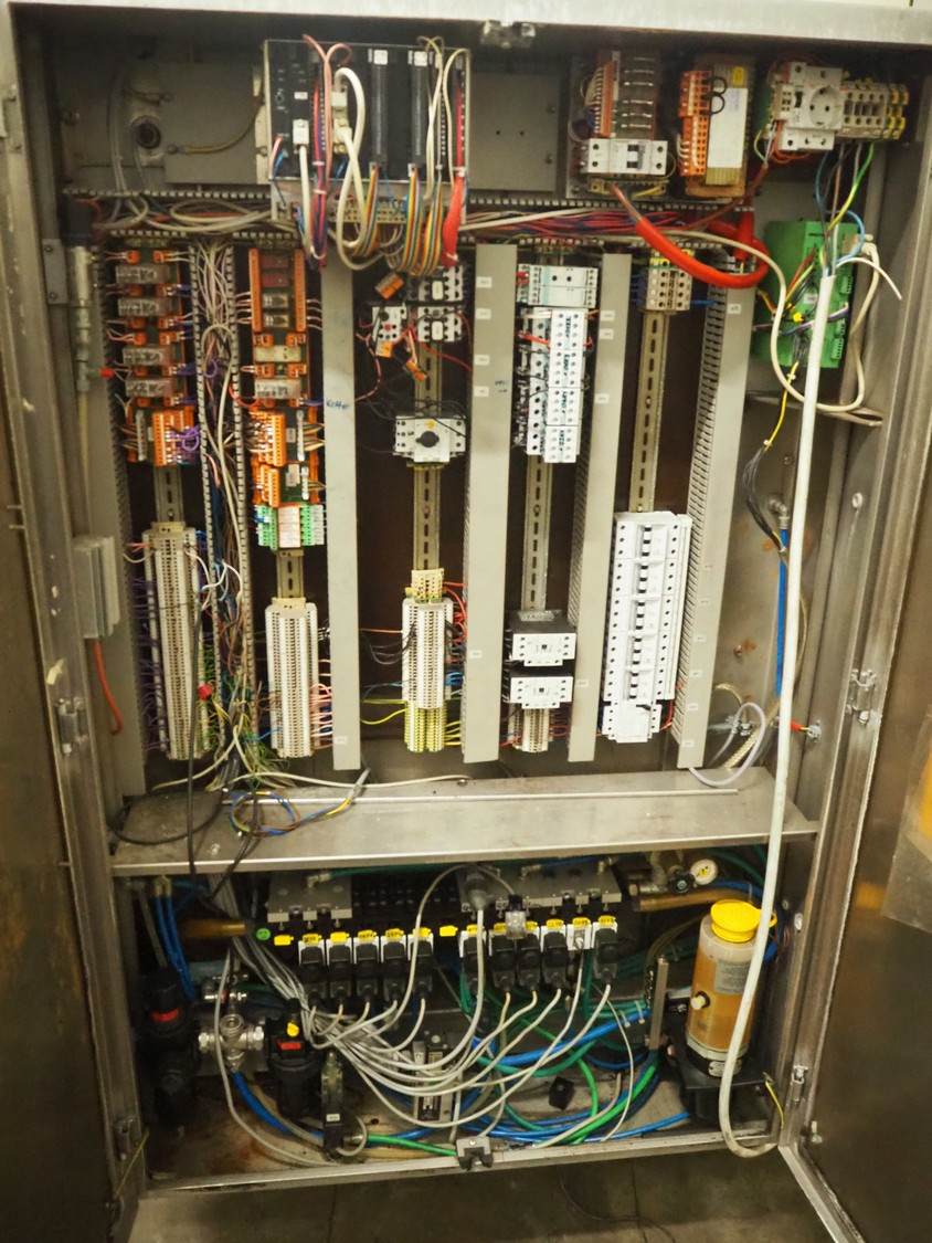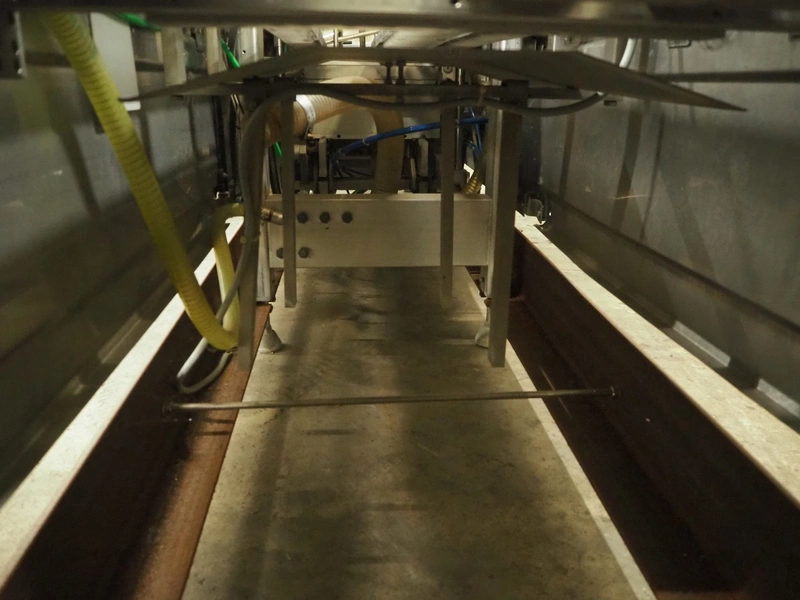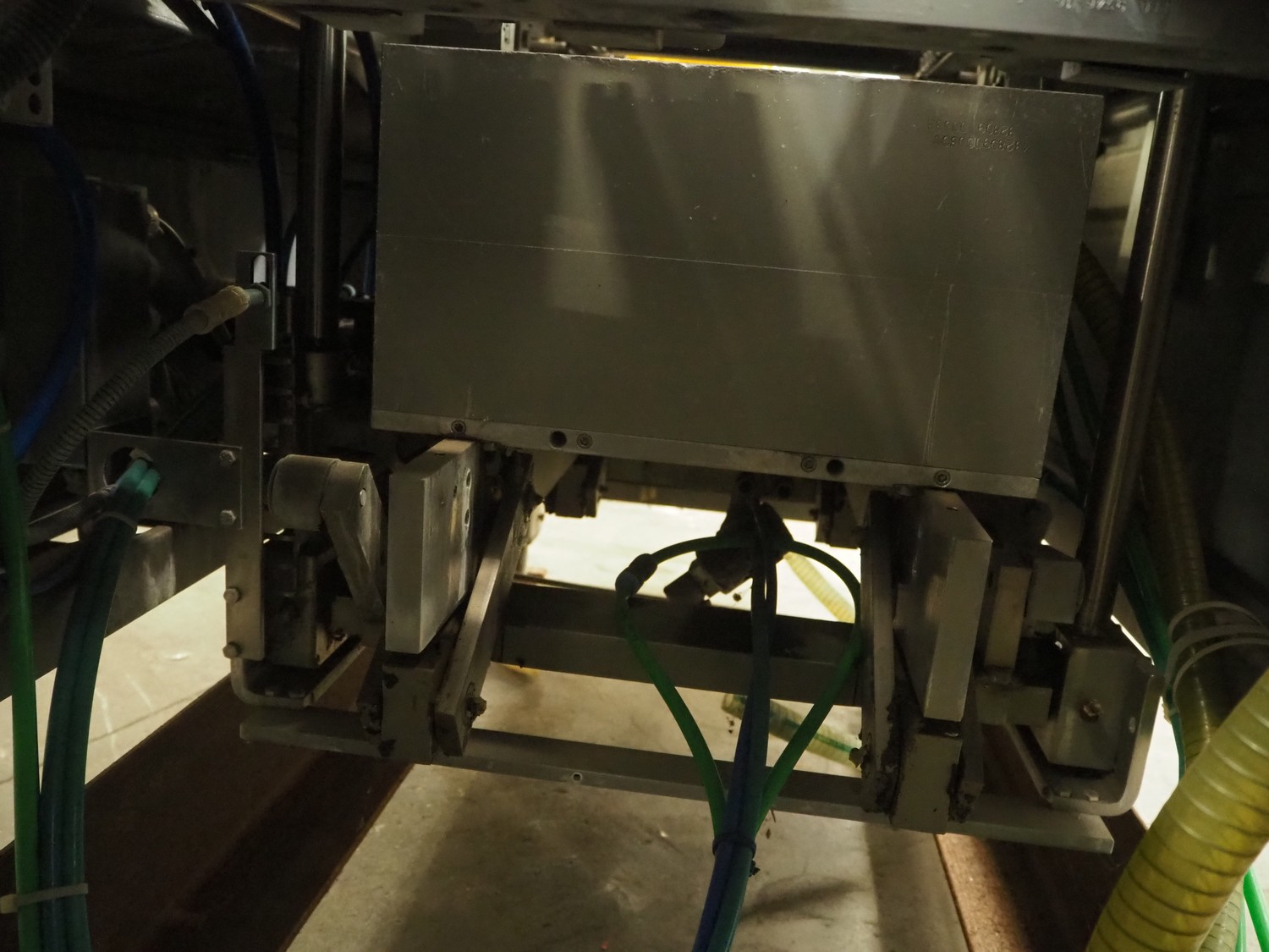 Multivac thermoformer, type: R530, dimensions dye: (8x) 78 mm x 325 mm, plastic belt, belt width: 378 mm, total dimensions: 7660 mm x 1040 mm x 1870 mm. Including Busch vacuum pump, dimensions pump: 1100 mm x 370 mm x 7200 mm.