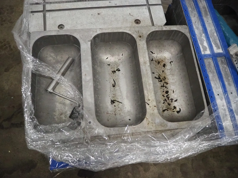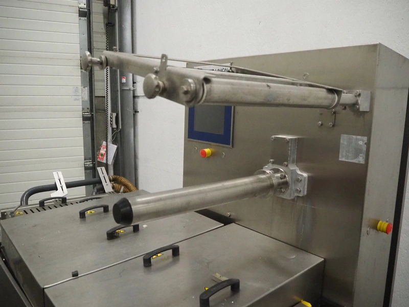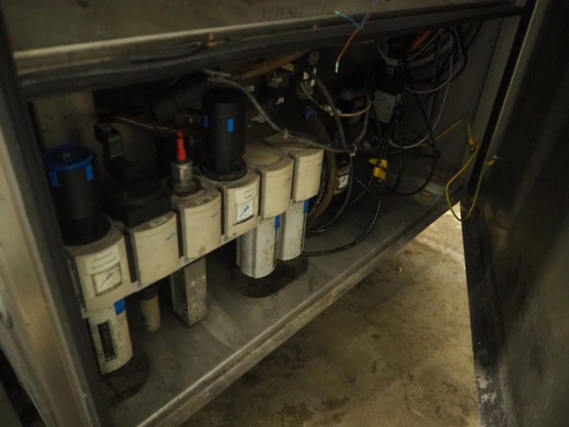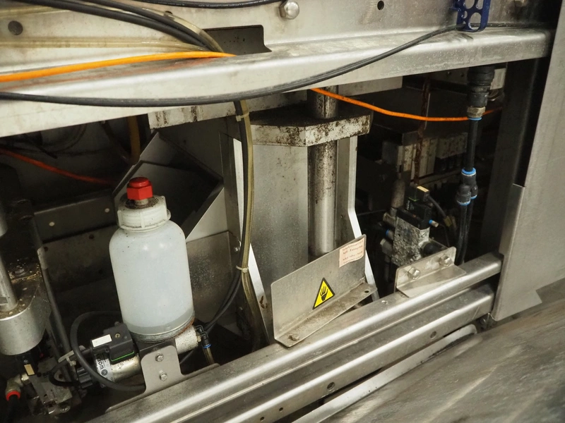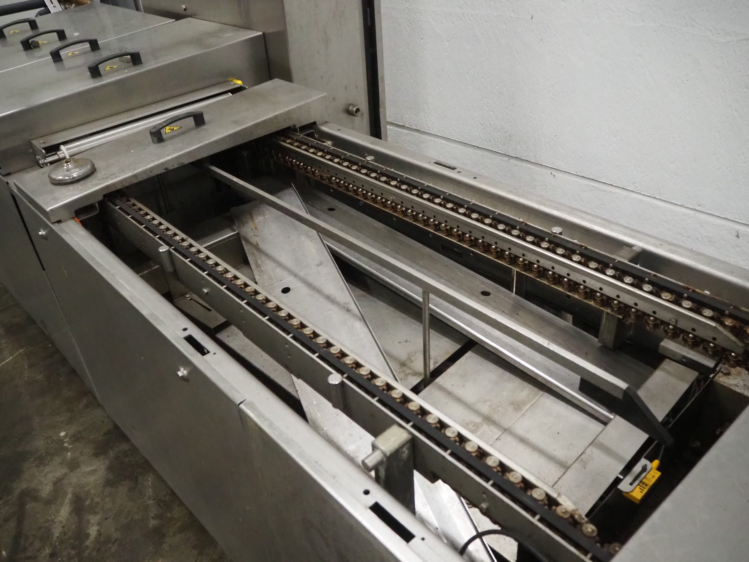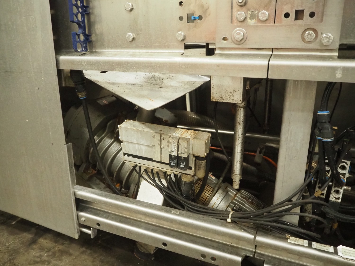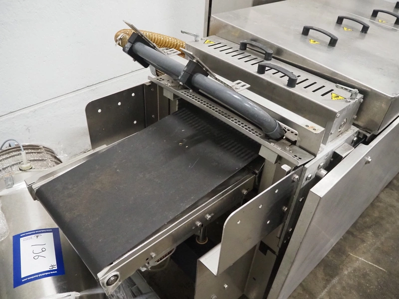 CFS thermoformer, type: PowerPak ST 420, Typ1, machine number: 14200106, year of construction: 2010, 400 V, 3 Ph, 50 Hz, 28 A, 18 kW, dye: (4x) 380 mm x 85 mm, plastic belt, belt width: 355 mm, Busch booster pump, type: WV 0500 H 001, number: 09919000265, capacity: 500 m³ per hour, total dimensions: 5200 mm x 1300 mm x 1800 mm. Including suction device, pallet with dyes, dye: (3x) 345 mm x 165 mm and parts.