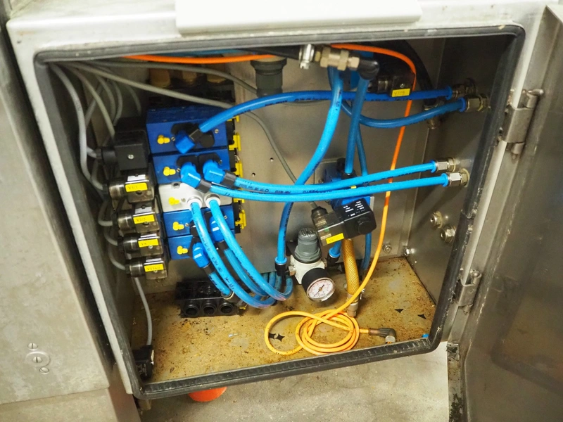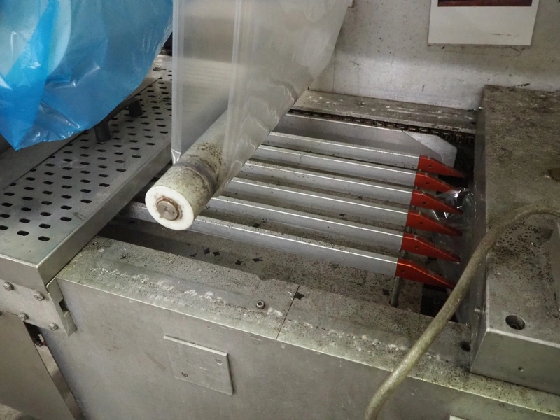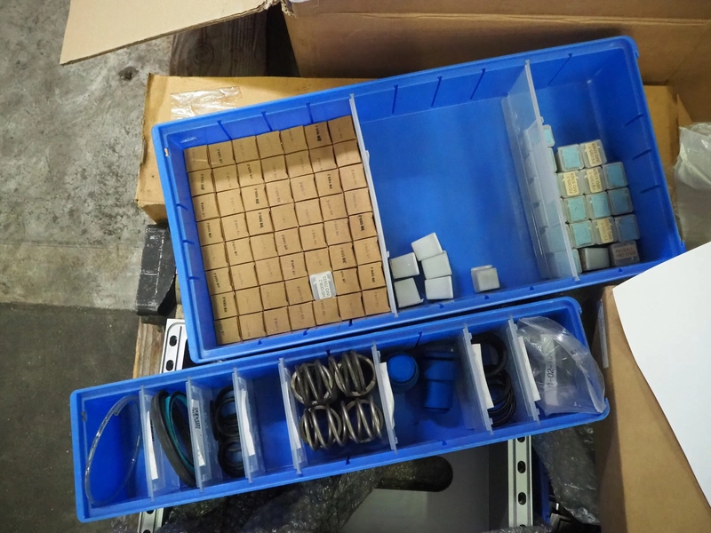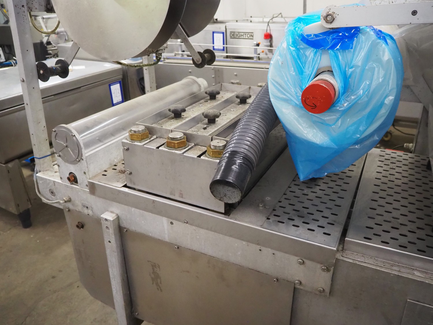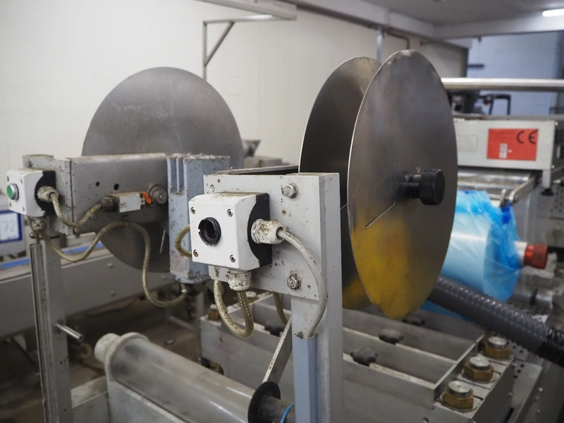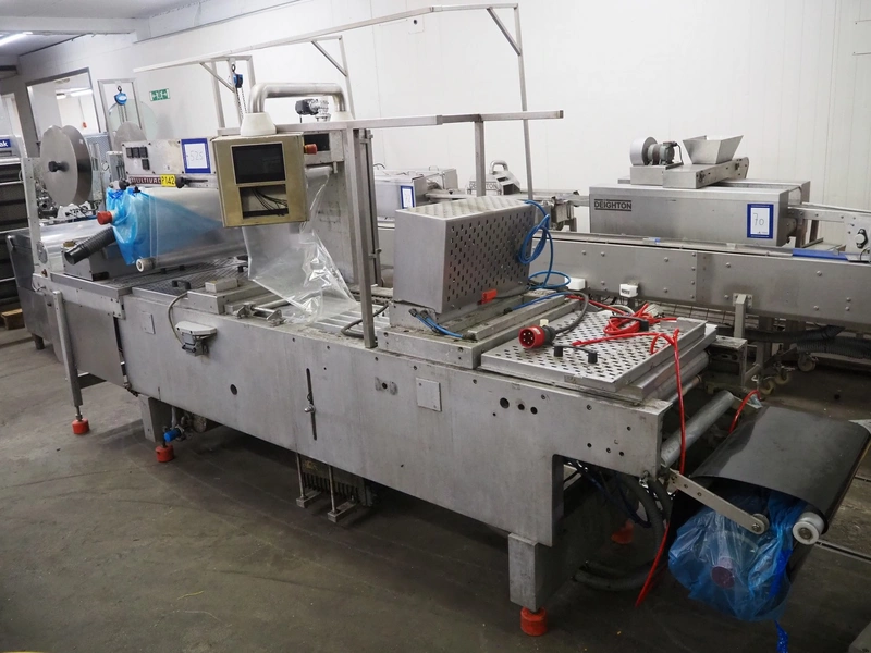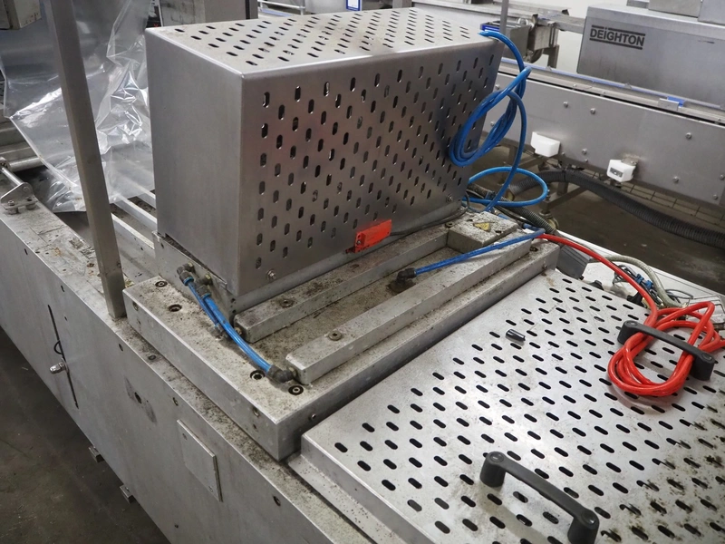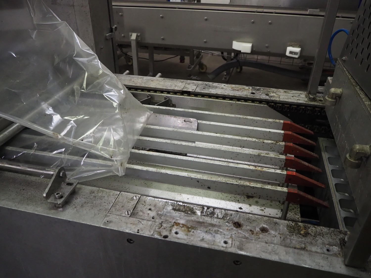 Repak b.v. thermoformer, type: R7000, machine number: RE12601, year of construction: 1997, 220/380 V, 3 Ph, 50 Hz, 34 A, 17 kW, film width: 560 mm, dye: (21x) 50 mm x 50 mm, Busch vacuum pump, capacity: 63 m³ per hour, total dimensions: 4300 mm x 1050 mm x 1850 mm. Including 3 pallets with parts and 7 pallets with film rolls.