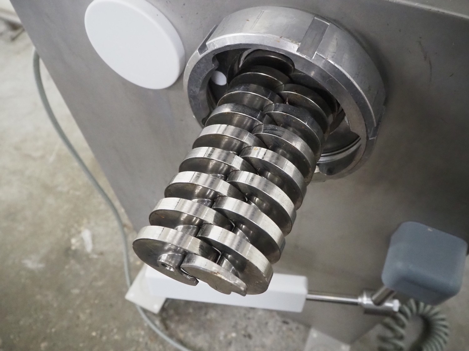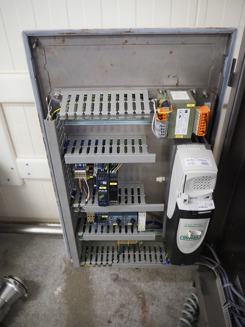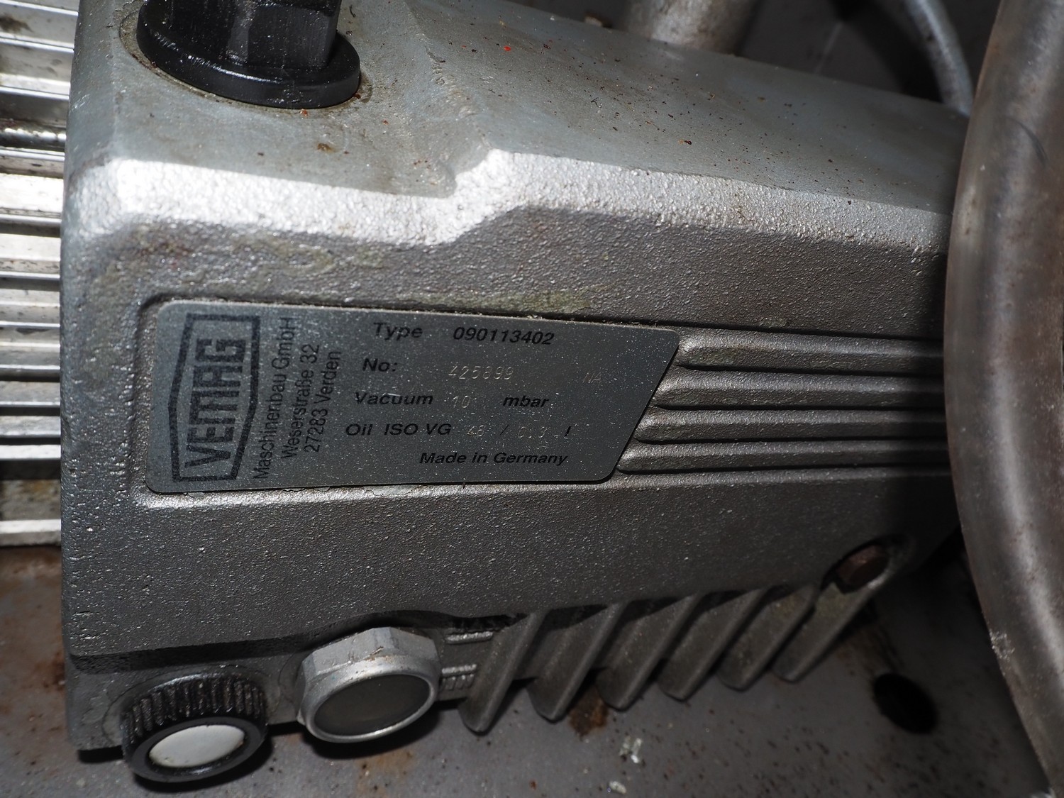 Vemag Maschinenbau GmbH mobile vacuum filling machine and co-extrusion, model: HP Coex, number: 172 0011, year of construction: 2014, 400-460 V, 3 Ph, 50/60 Hz, 2 A, 1.3 kW, weight: 253 kg, Vemag vacuum pump, type: 090113402, number: 425899, dimensions: 1100 mm x 800 mm x 2100 mm.