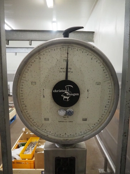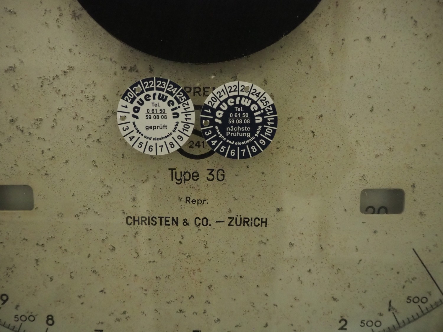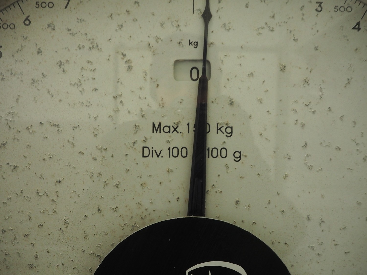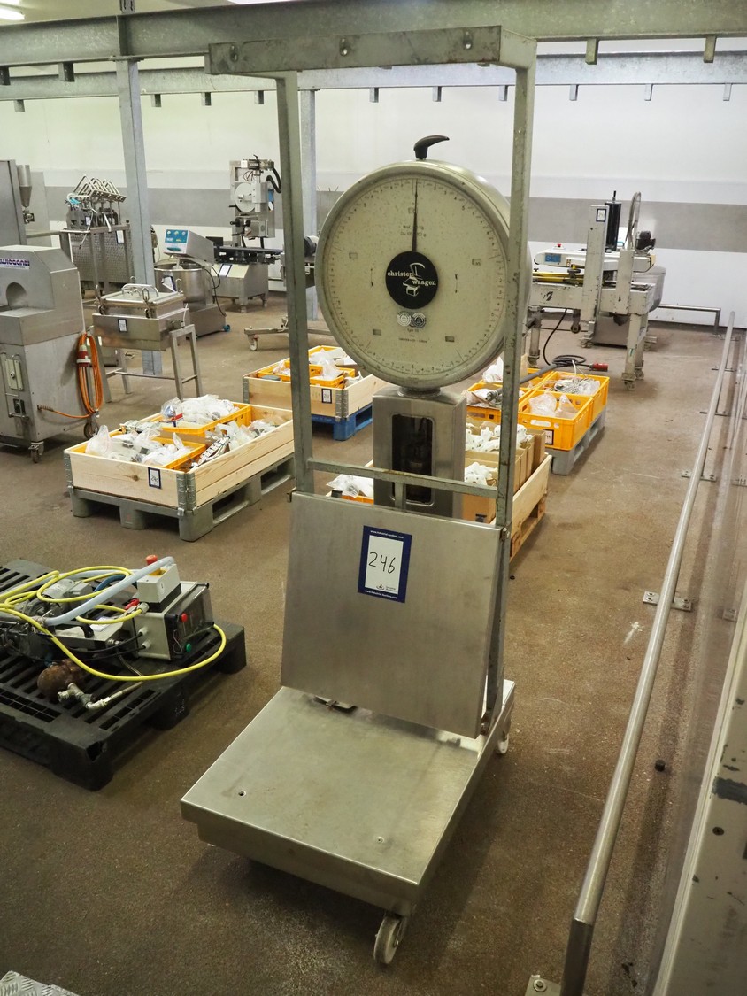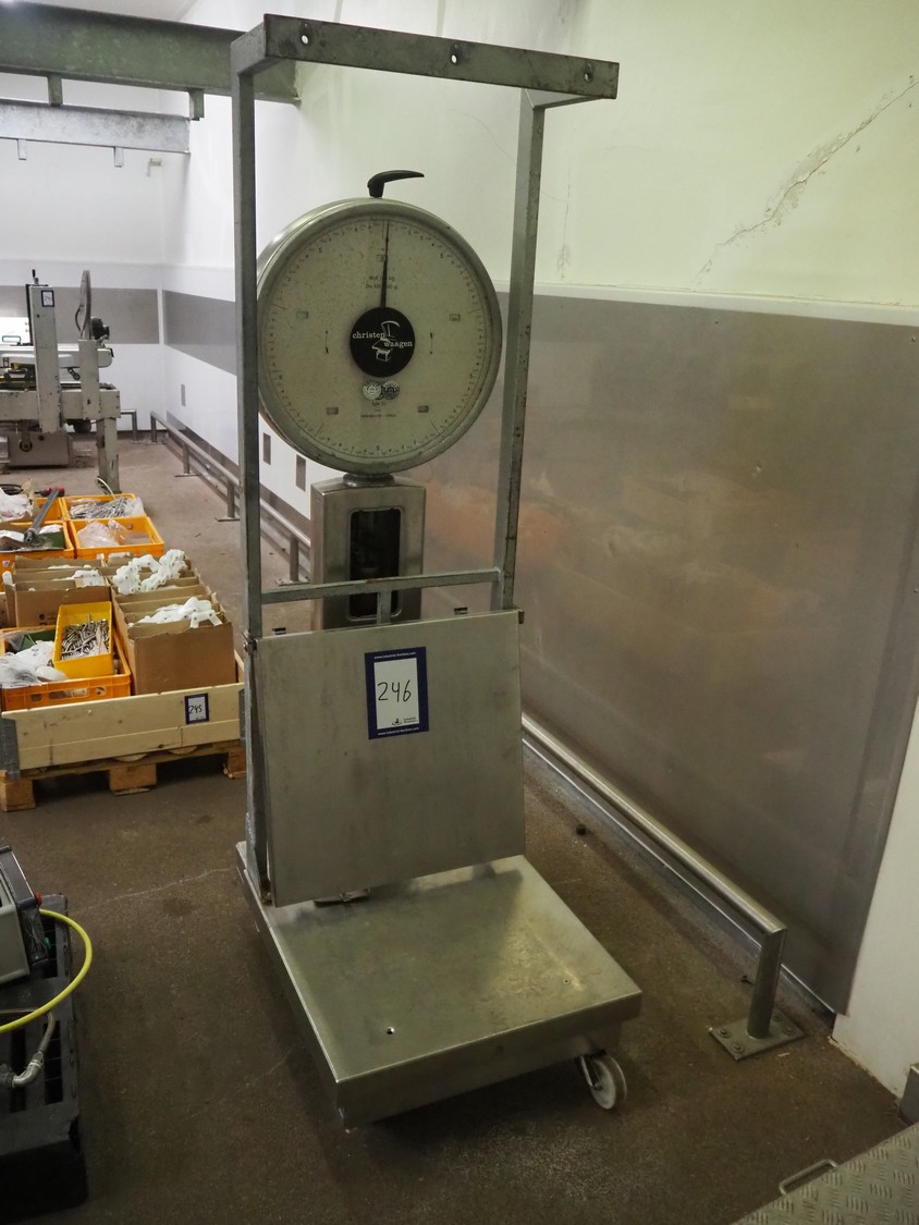 Christen & Co. mobile weighing scale, type: 3G, maximum capacity: 150 kg, dimensions scale: 600 mm x 660 mm, total dimensions: 900 mm x 630 mm x 2040 mm.