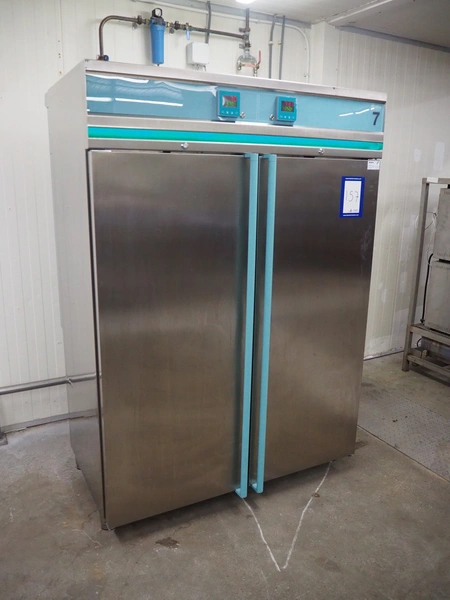 Hettich laboratory cabinet, type: PSC 1400, serial number: 202010542, year of construction: 2020, 220/240 V, 50 Hz, weight: 260 kg, refrigerant: R134A, 8 floors, dimensions each floor: 600 mm x 520 mm, total dimensions: 1420 mm x 950 mm x 2000 mm.