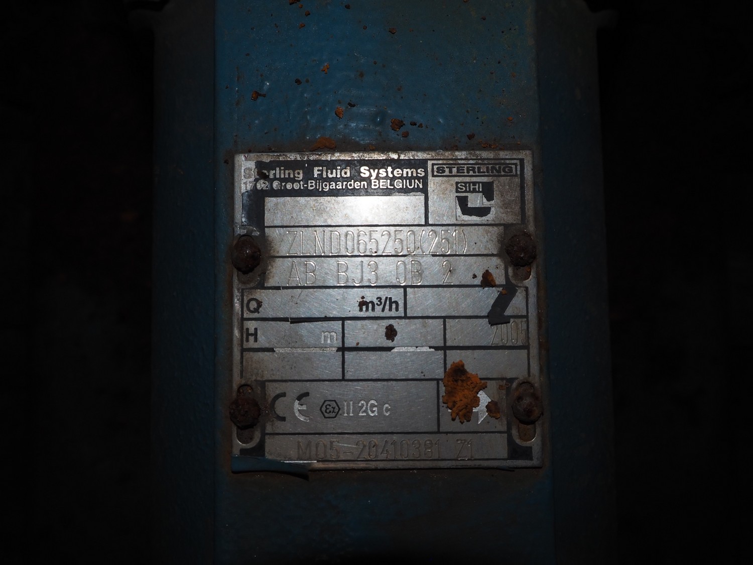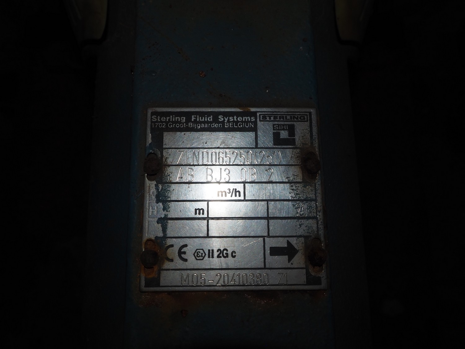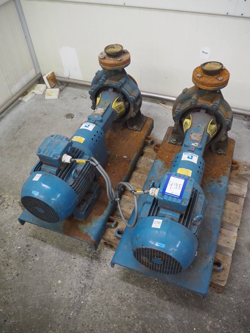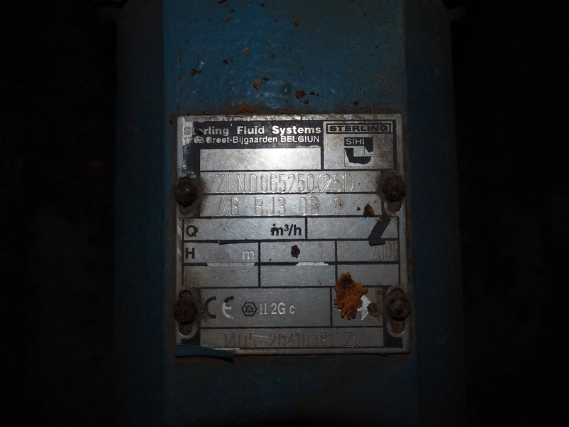 2 Sterling Fluid Systems centrifugal pumps, model: ZLND065250(251), year of construction: 2005, dimensions: (2x) 1100 mm x 500 mm x 600 mm.