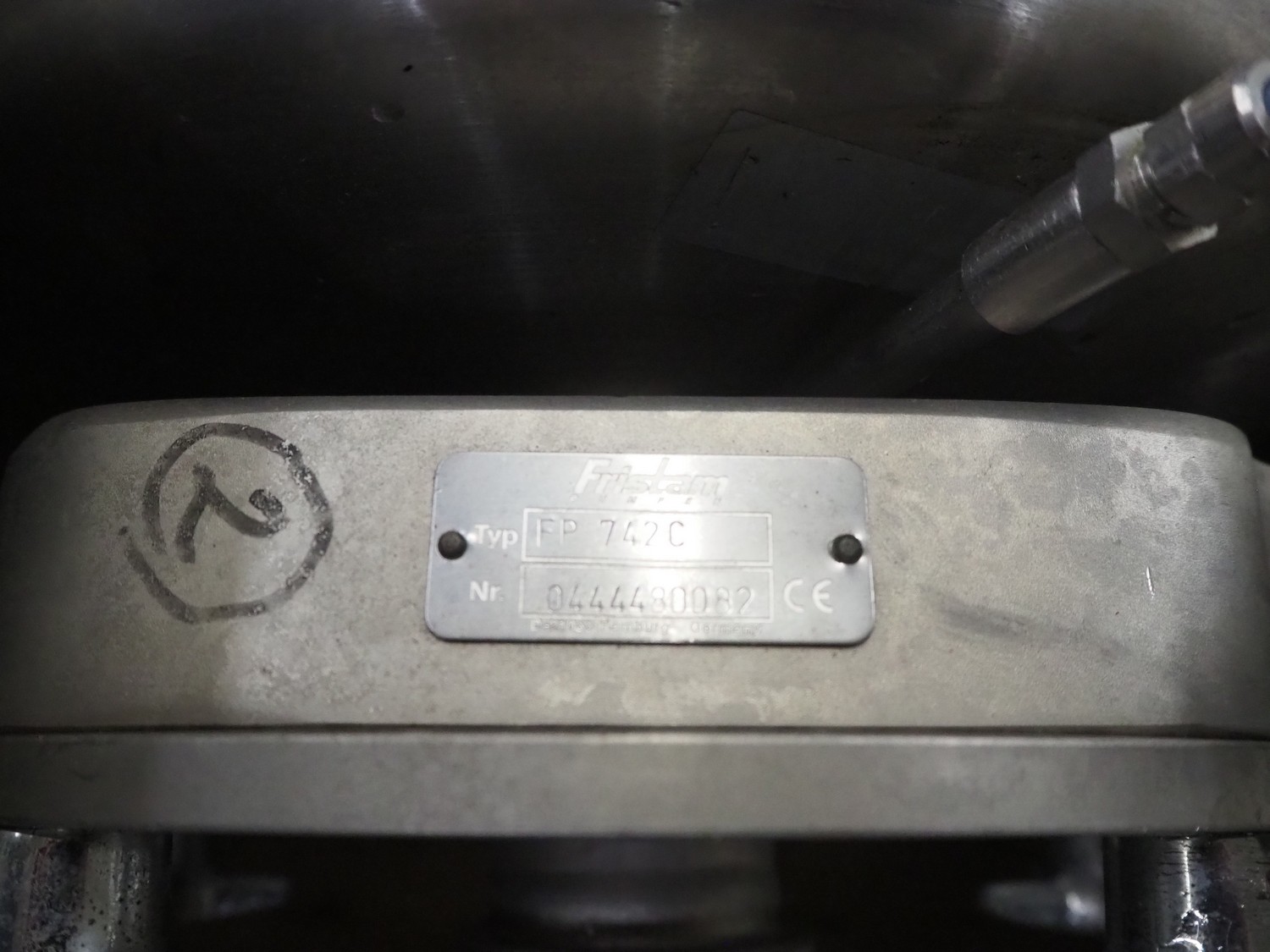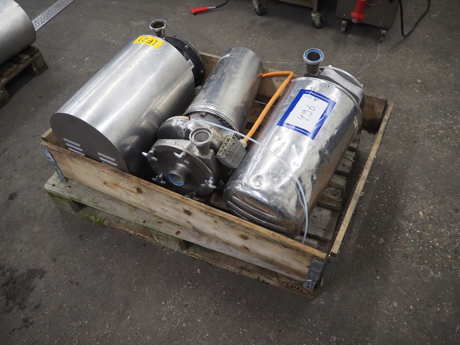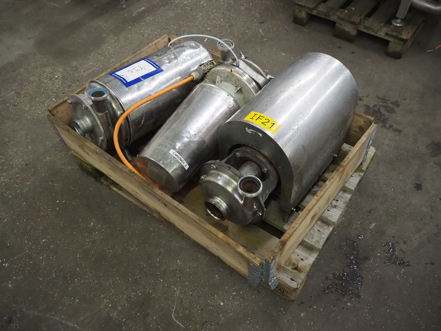Pallet with fristam centrifugal pump, type: FP 742C, number: 0444480082 and 2 centrifugal pump, dimensions: 1200 mm x 800 mm x 500 mm.