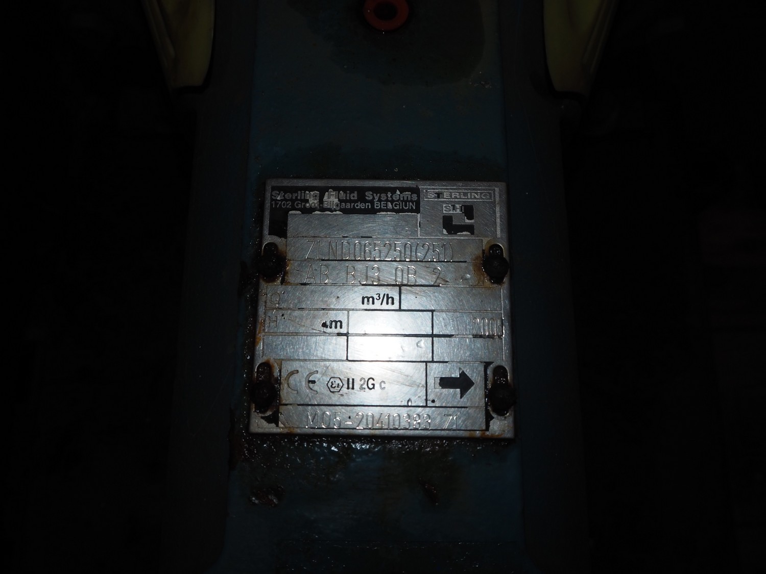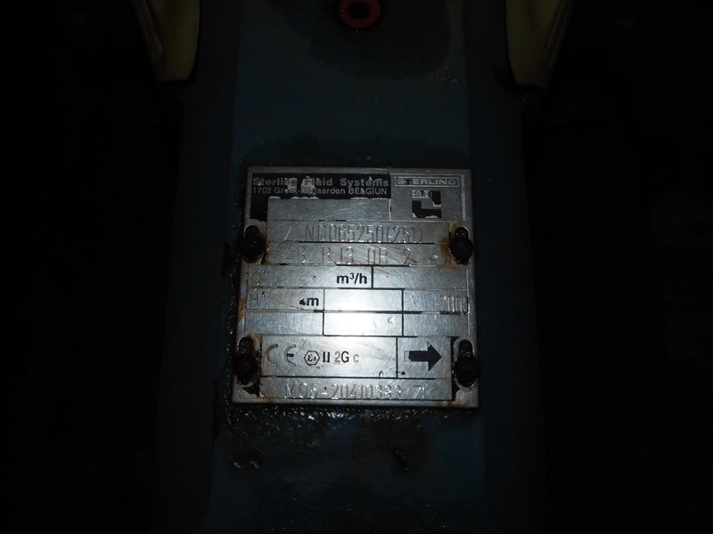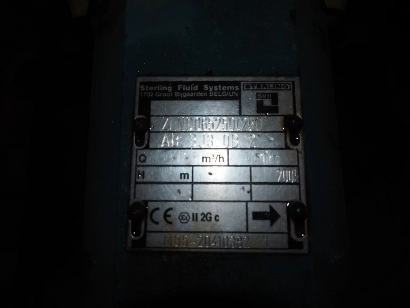 2 Sterling Fluid Systems centrifugal pumps, model: ZLND065250(251), year of construction: 2005, dimensions: (2x) 1100 mm x 500 mm x 600 mm.