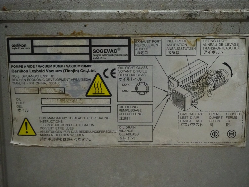 Leybold vacuum pump, dimensions: 1000 mm x 600 mm x 500 mm.