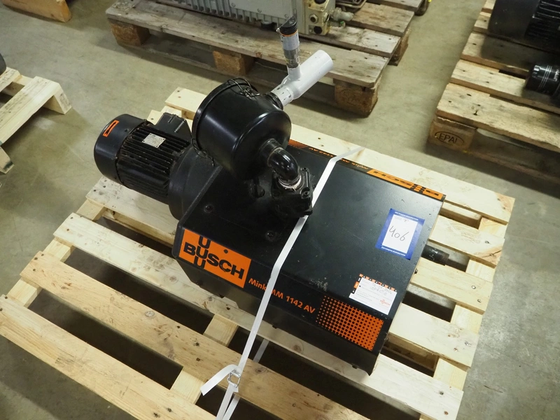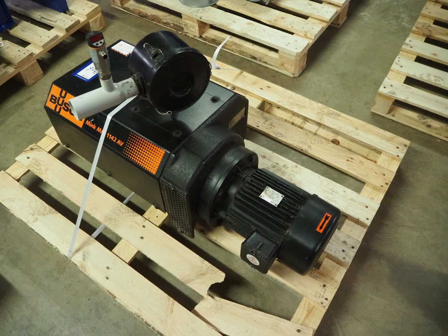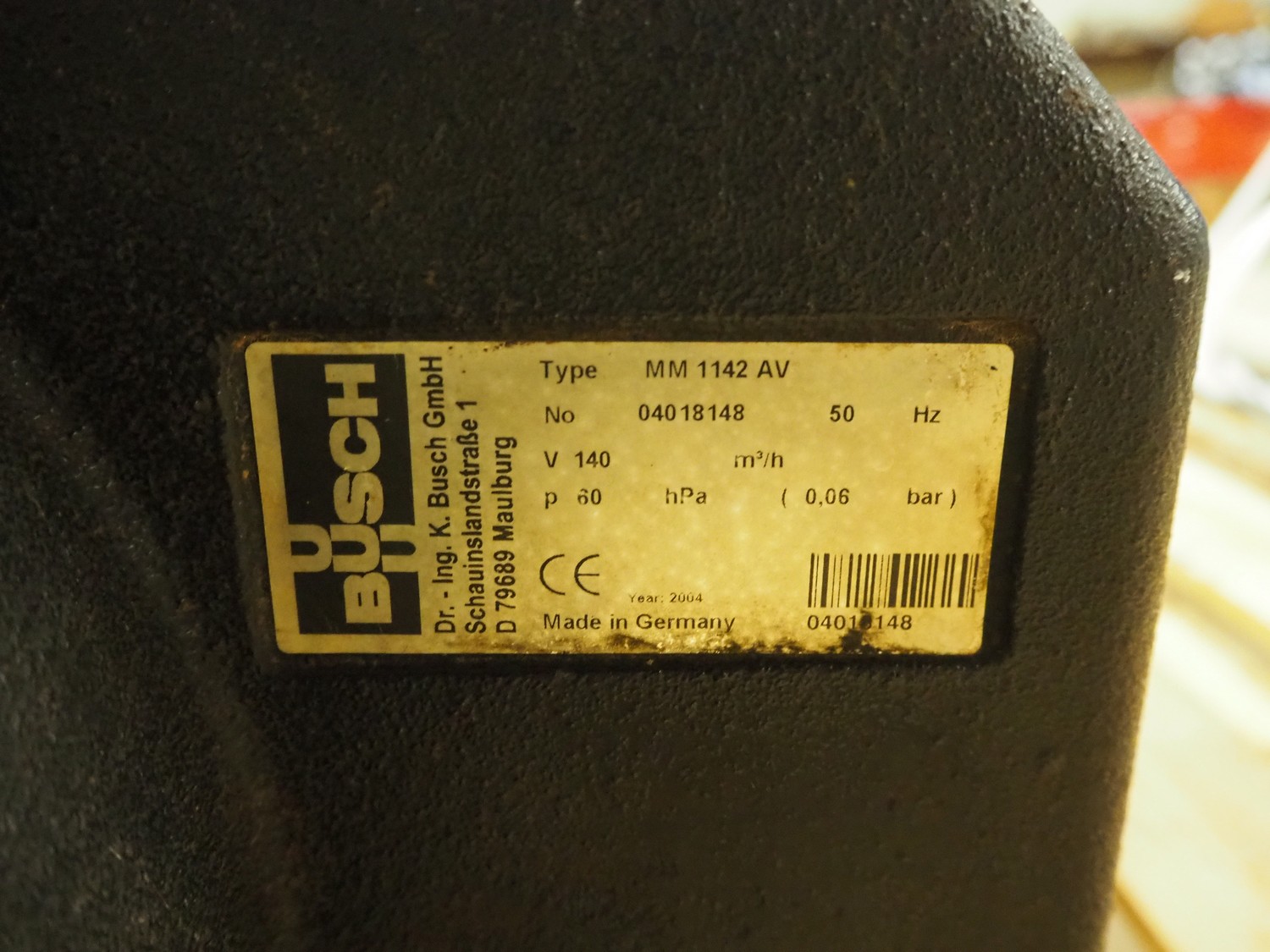 Busch vacuum pump, type: MM 1142 AV, number: 04018148, capacity: 140 m³ per hour, 50 Hz, dimensions: 950 mm x 400 mm x 650 mm.