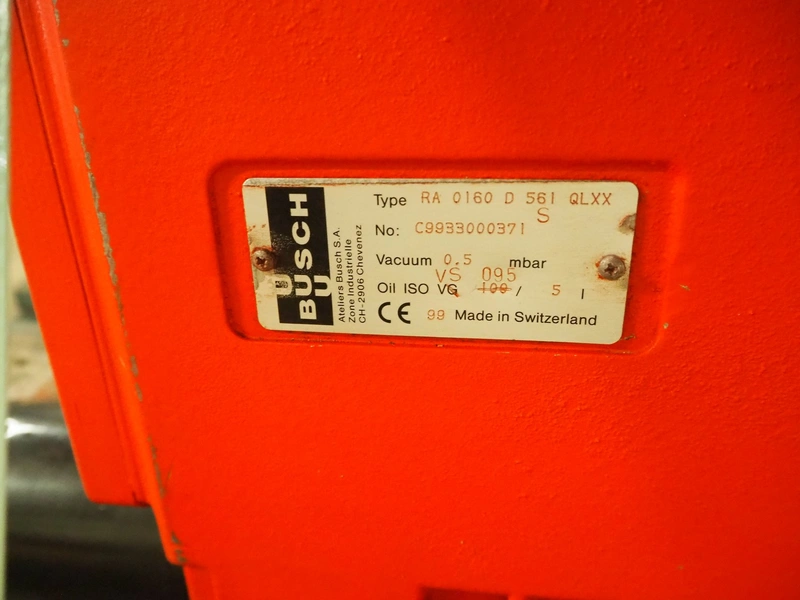 Busch vacuum pump, type: RA 0160 D 56I QLXX, number: C9933000371, capacity: 160 m³ per hour, dimensions: 840 mm x 500 mm x 420 mm.