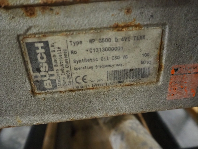 Busch vacuum pump, type: WP 0500 D 4V1 TLXX, number: C1313000001, year of construction: 2013, capacity: 500 m³ per hour, dimensions: 1000 mm x 330 mm x 500 mm.