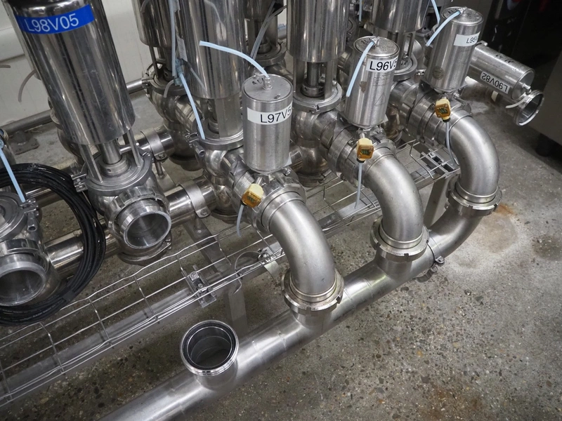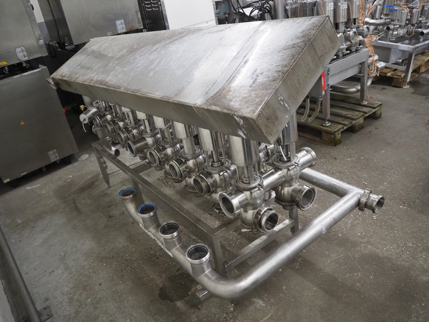 S/s manifold with 16 valves, dimensions: 2500 mm x 1050 mm x 1220 mm.