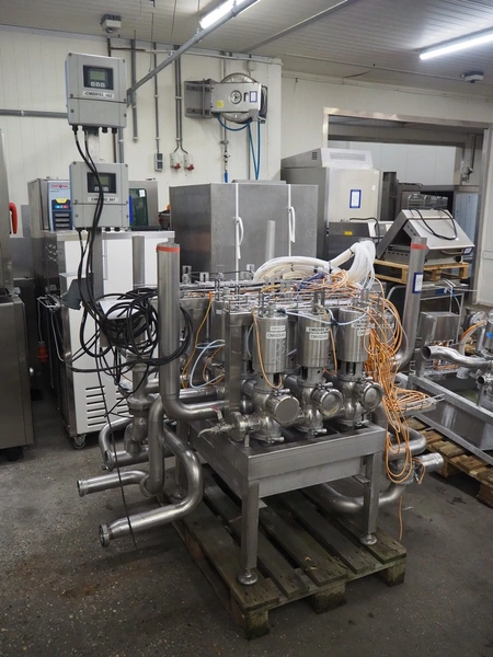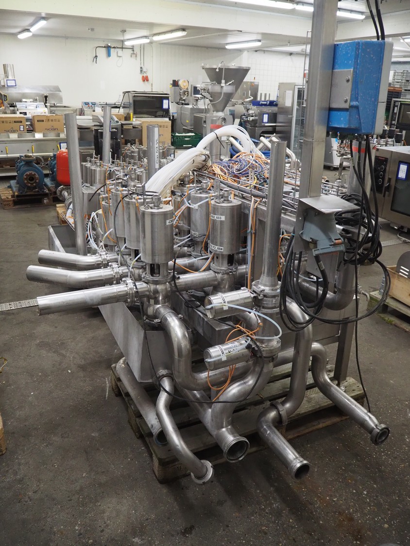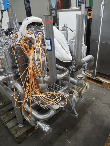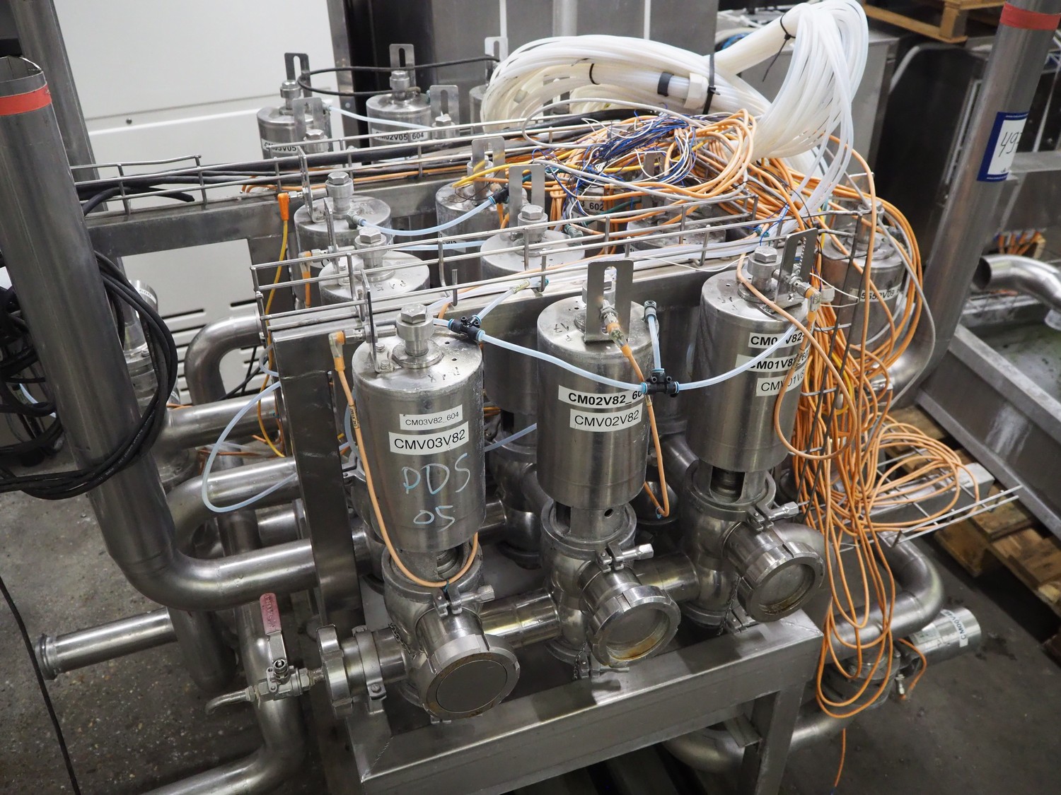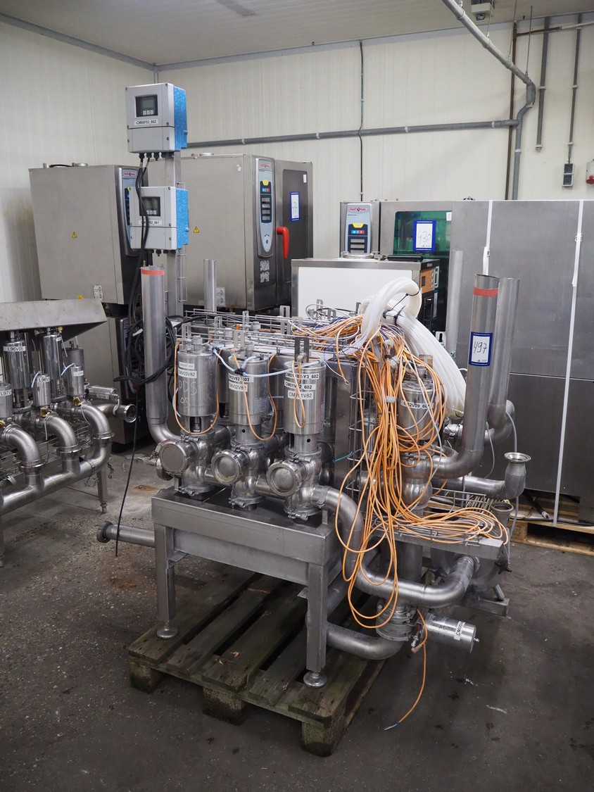 Manifold with 13 Pentair valves and centrifugal pump, dimensions: 1700 mm x 1550 mm x 2000 mm.