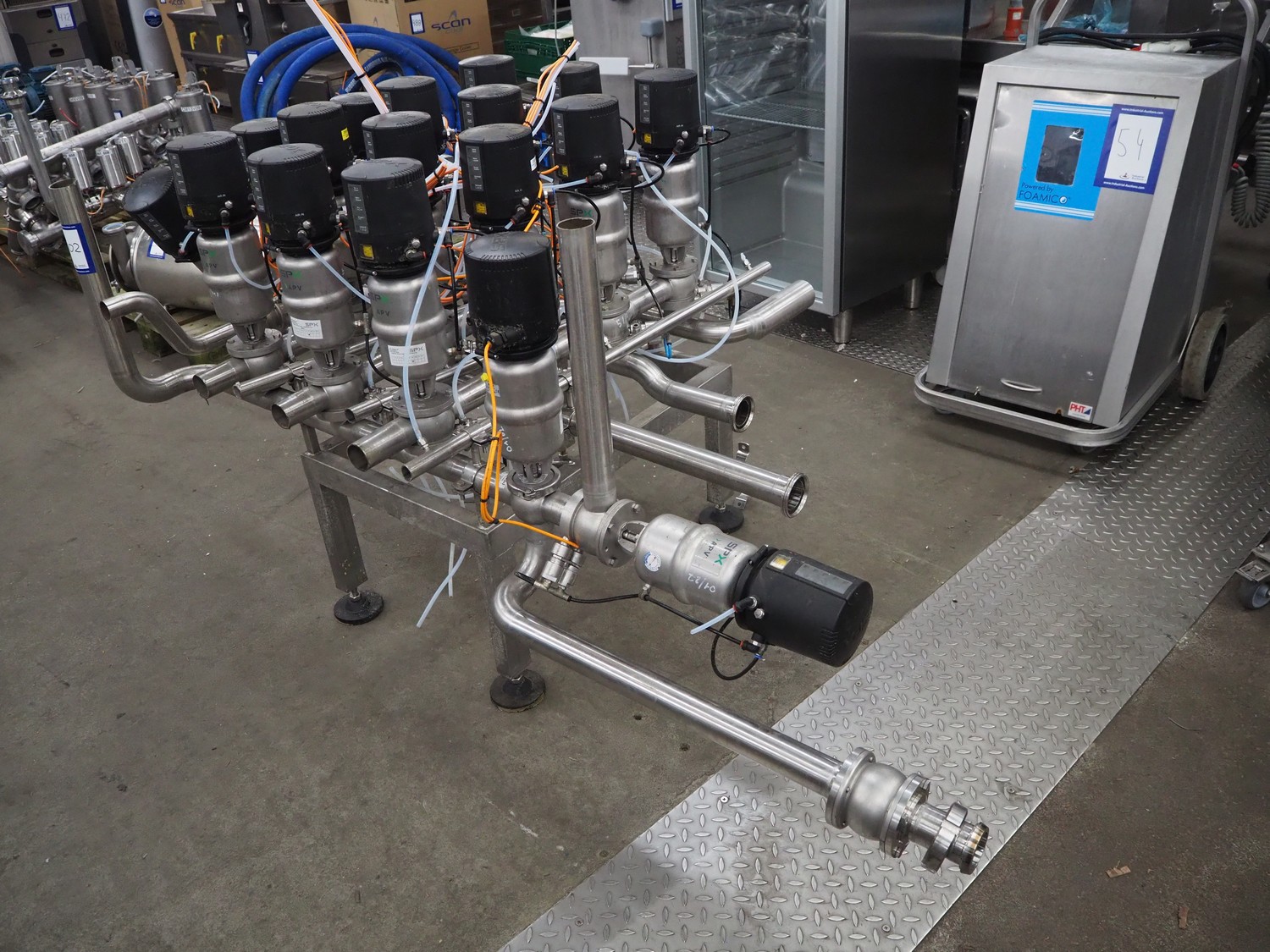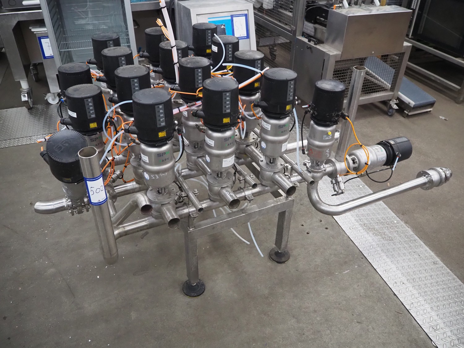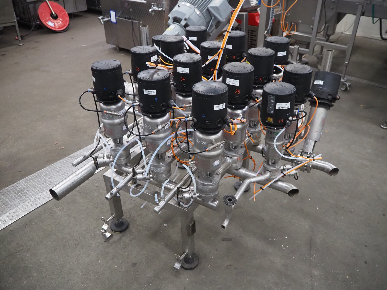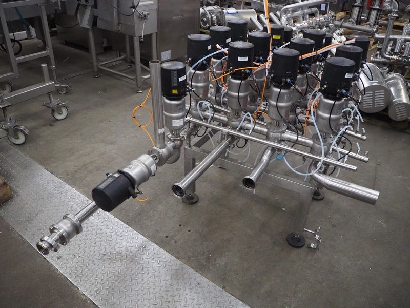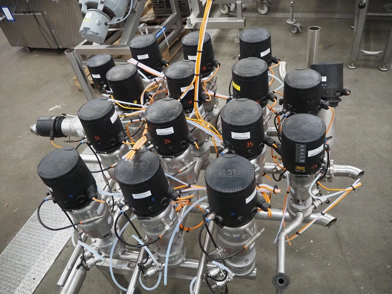 APV/SPX manifold with 17 valves, dimensions: 1950 mm x 1150 mm x 1500 mm.