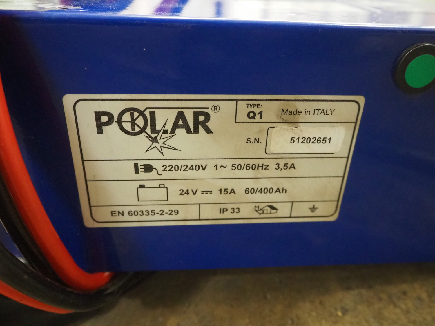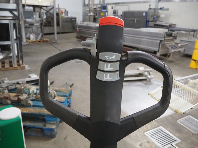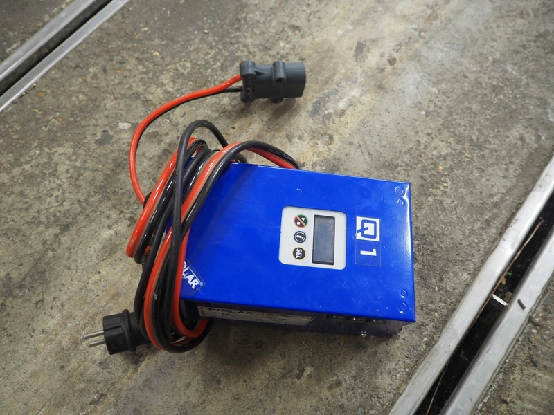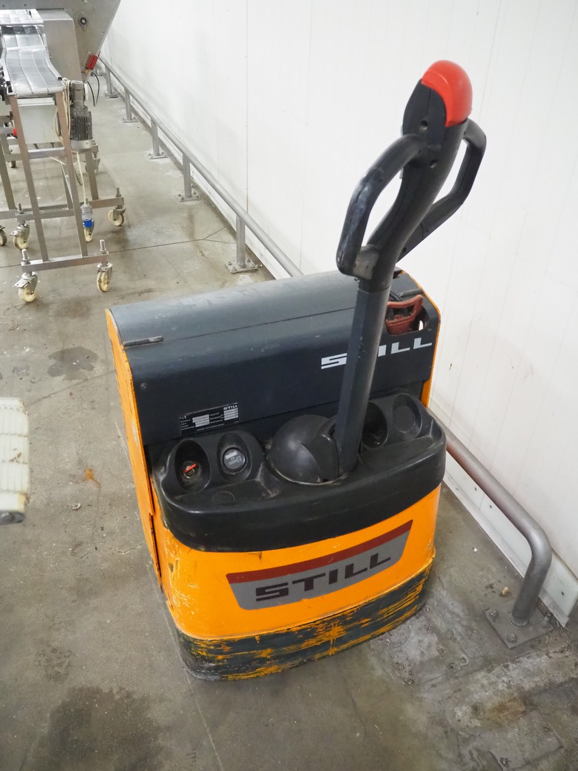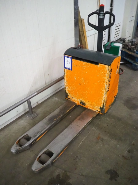 Still electric pallet lifter, type: EGU 20, serial number: 710119021229, year of construction: 2000, capacity: 2000 kg, weight: 535 kg, working hours: 3535 hour, fork length: 1150 mm, maximum lifting height: 200 mm, total dimensions: 1800 mm x 700 mm x 1400 mm. Including Polar battery charger, type: Q1, serial number: 51202651.