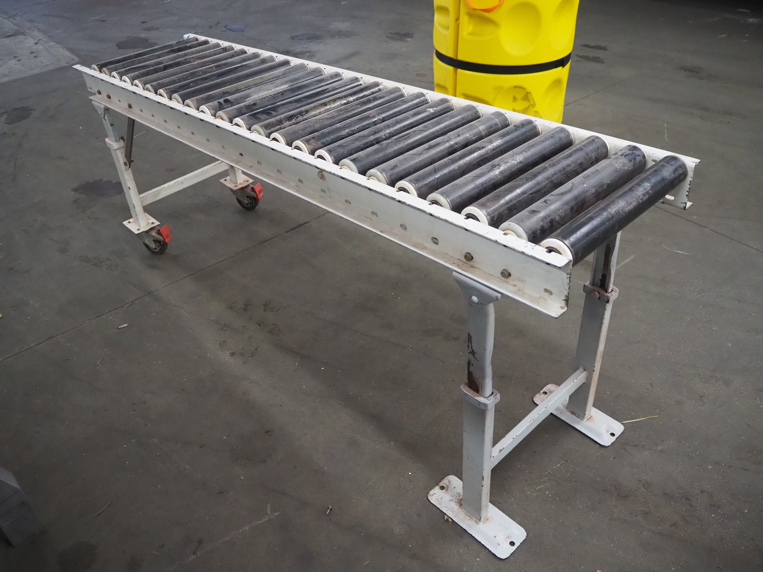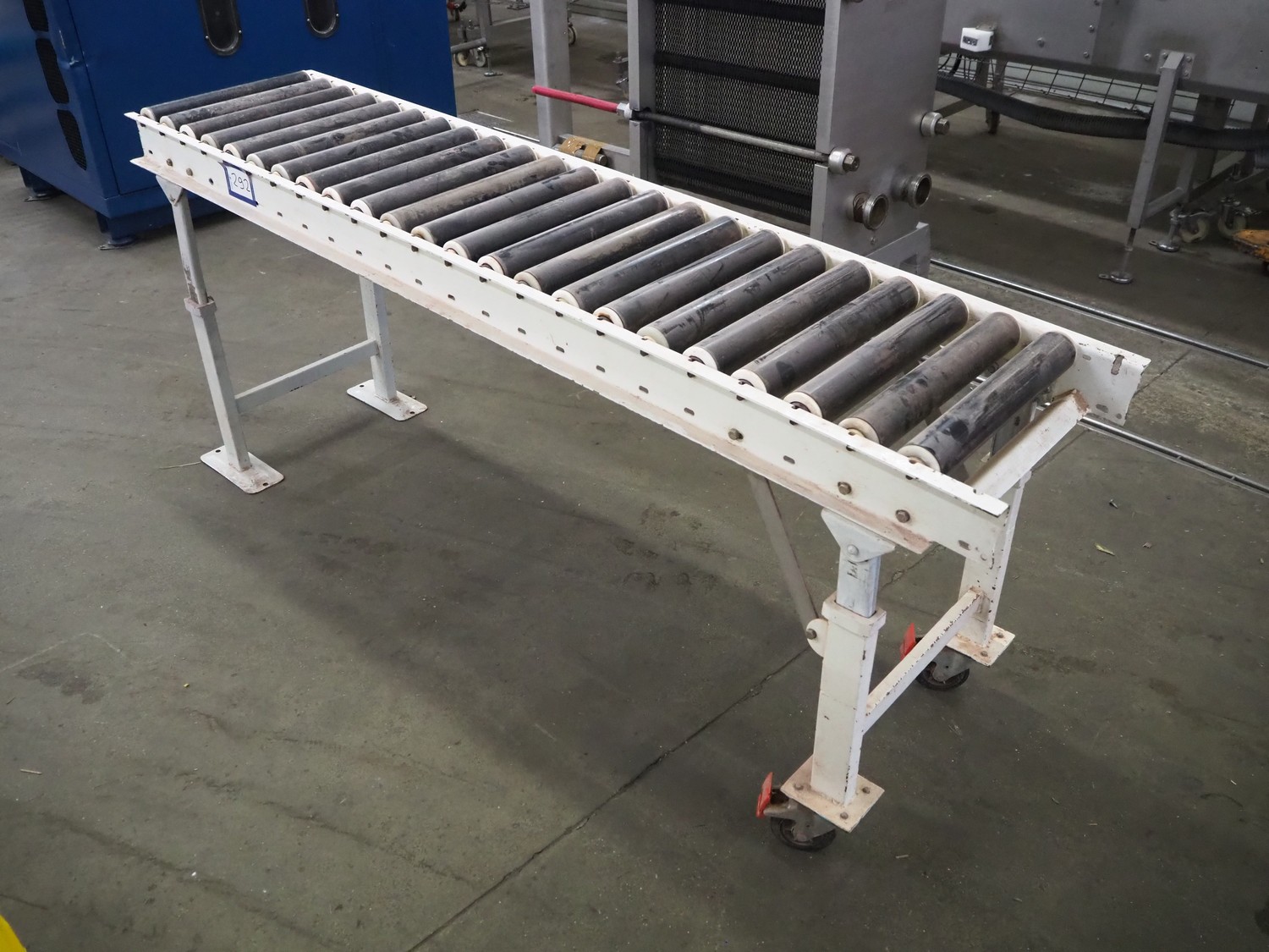 Mobile roller conveyor with plastic rollers, roller width: 400 mm, total dimensions: 1970 mm x 500 mm x 850 mm.