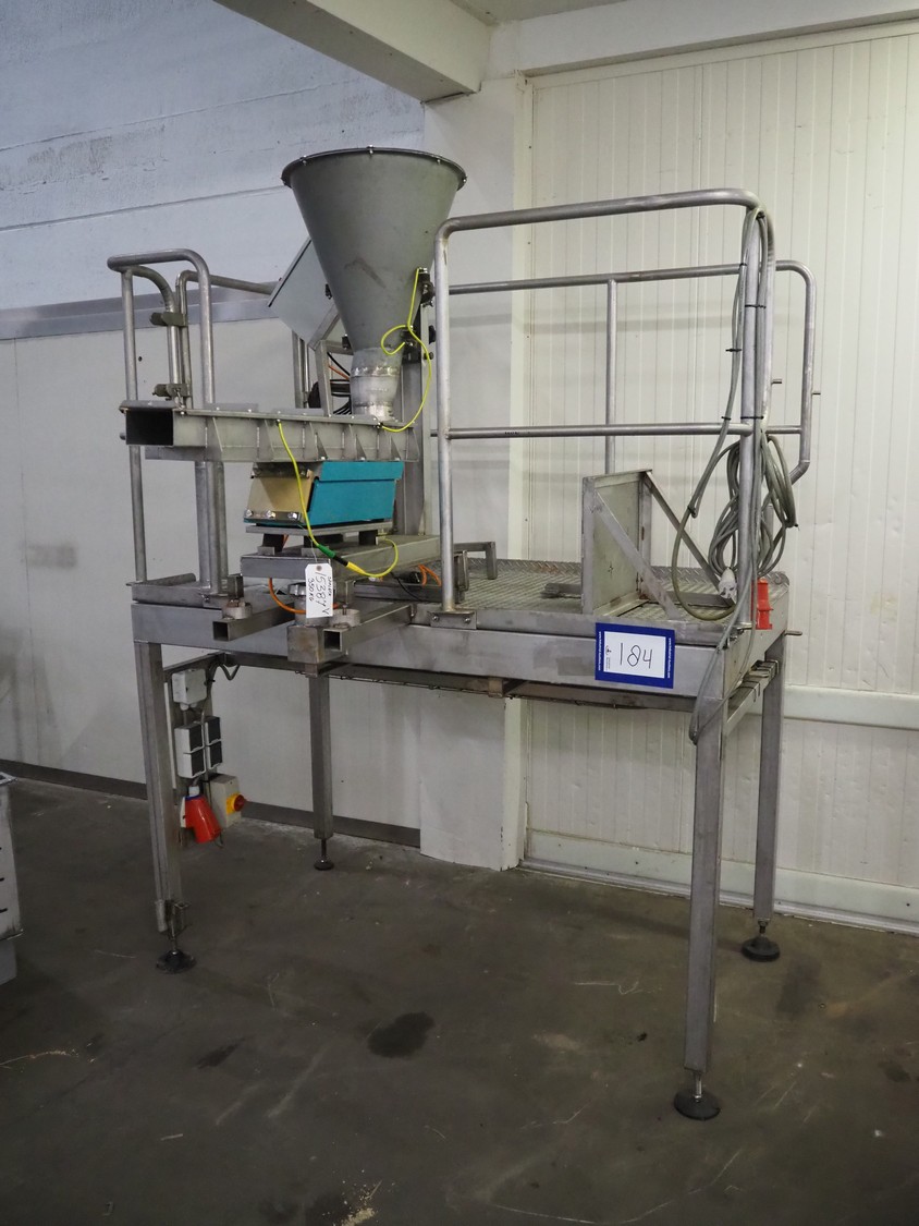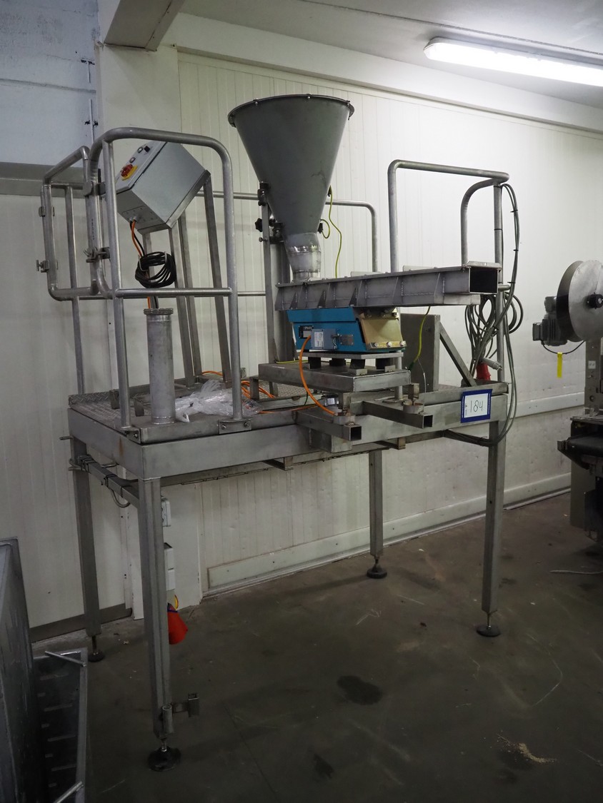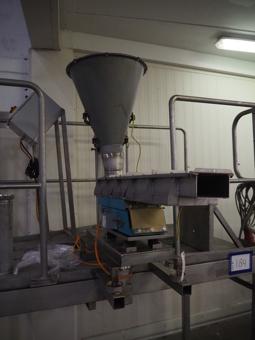 S/s platform with Spaleck vibrating gutter, type: SFDU 120-70-1000, fabrication number: 153316, year of construction: 2006, gutter width: 120 mm, working height platform: 1220 mm, total dimensions: 1800 mm x 1800 mm x 2400 mm.