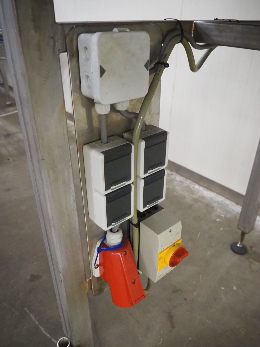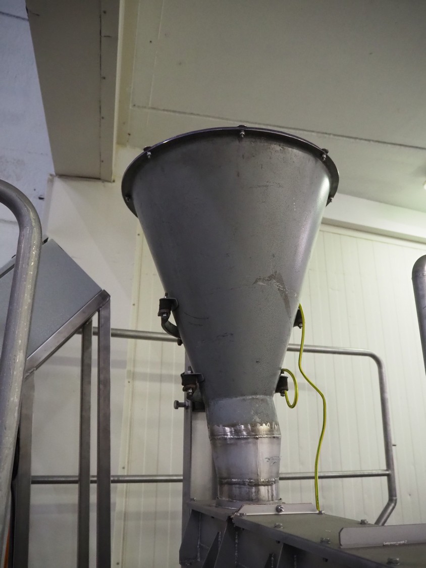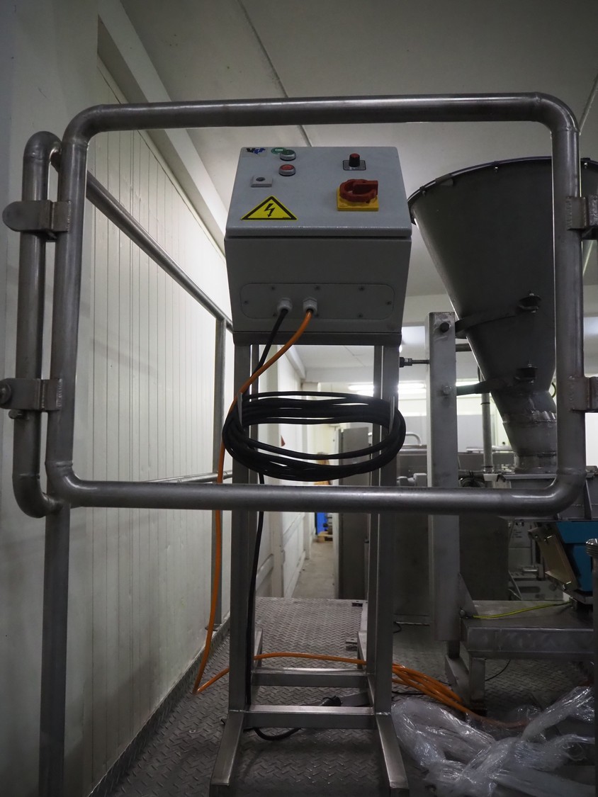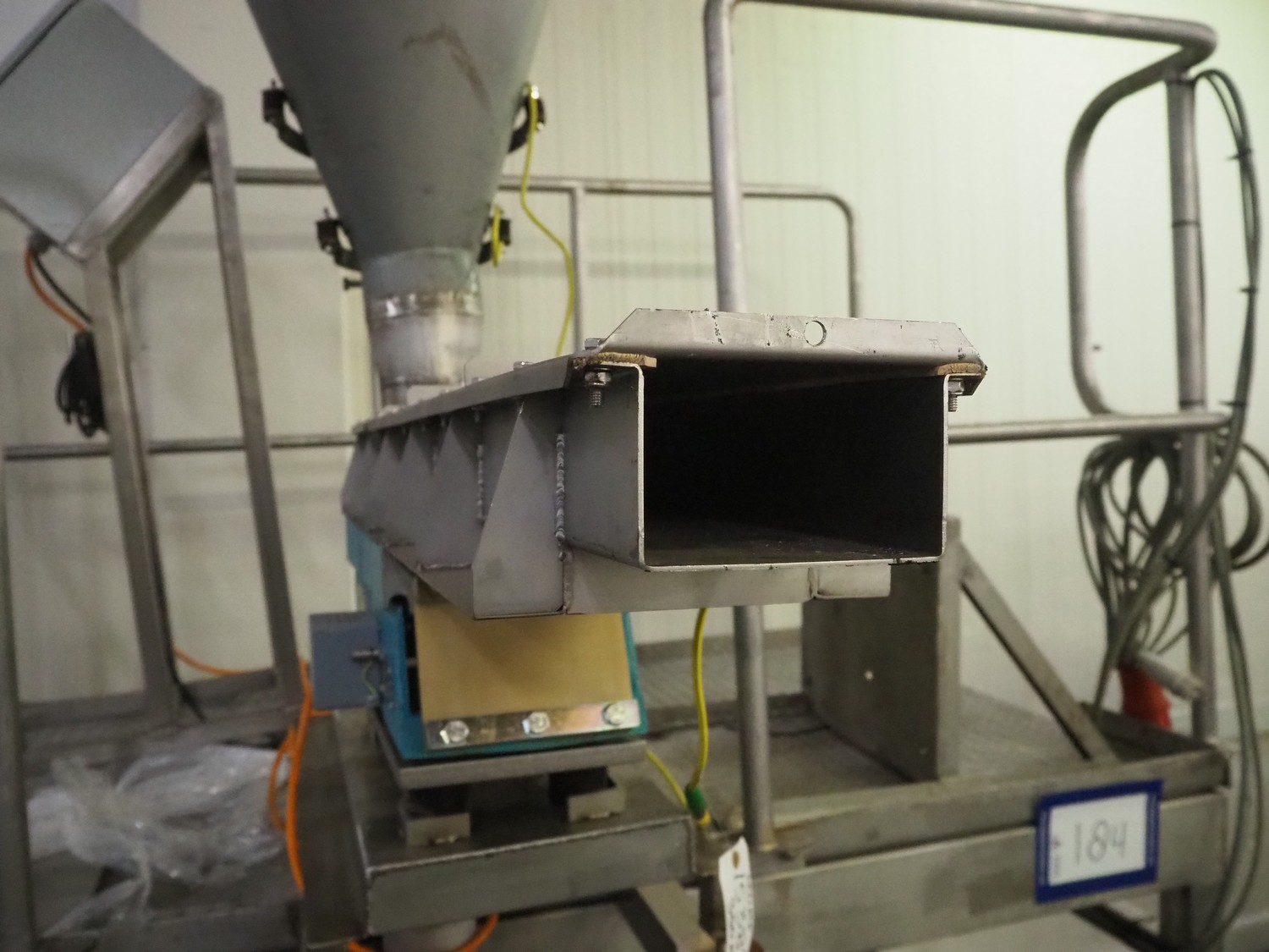 S/s platform with Spaleck vibrating gutter, type: SFDU 120-70-1000, fabrication number: 153316, year of construction: 2006, gutter width: 120 mm, working height platform: 1220 mm, total dimensions: 1800 mm x 1800 mm x 2400 mm.