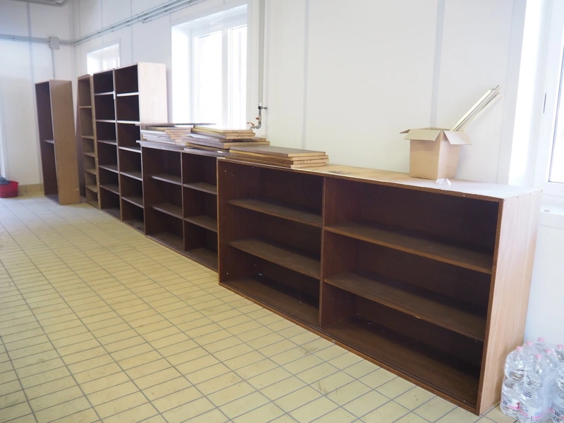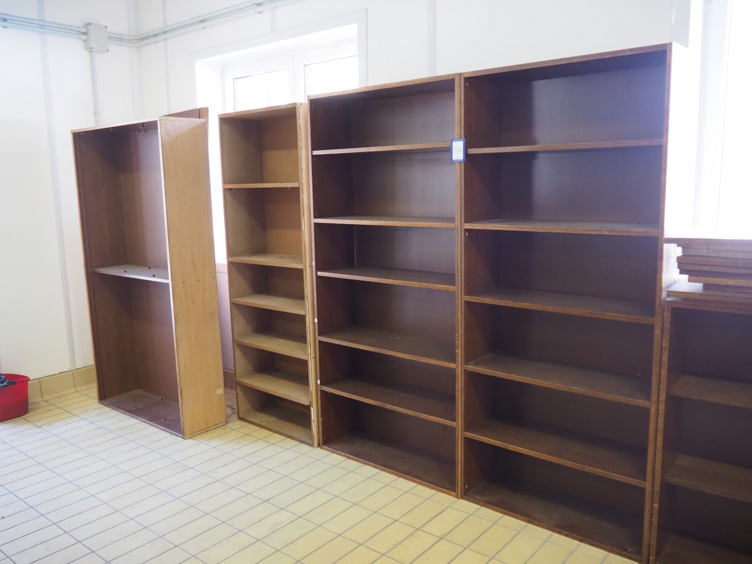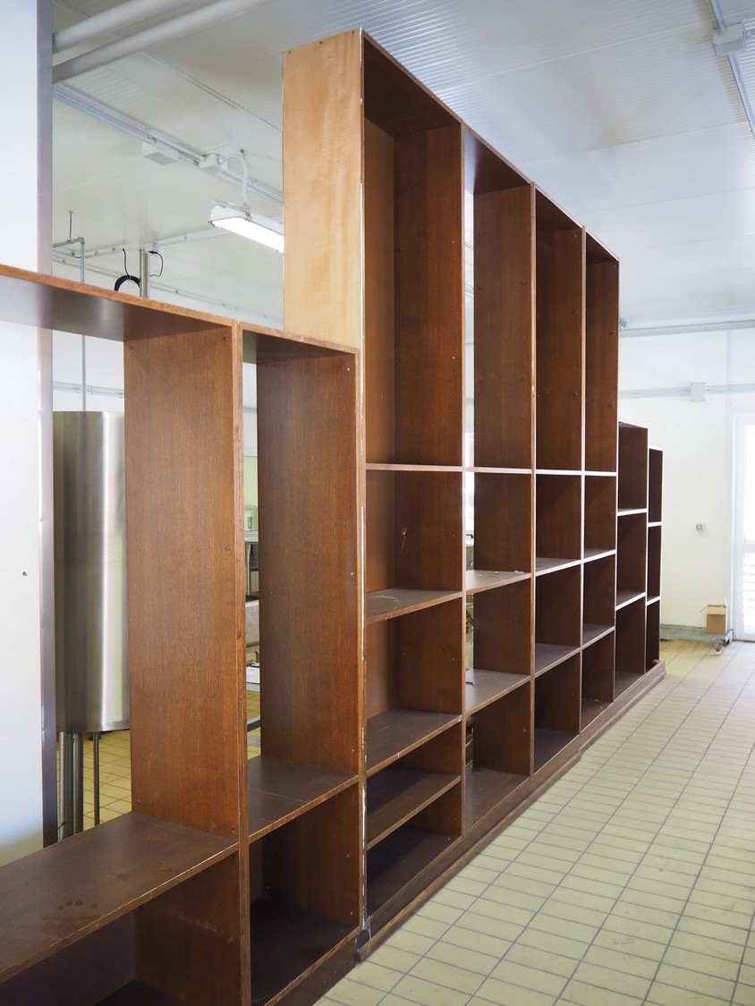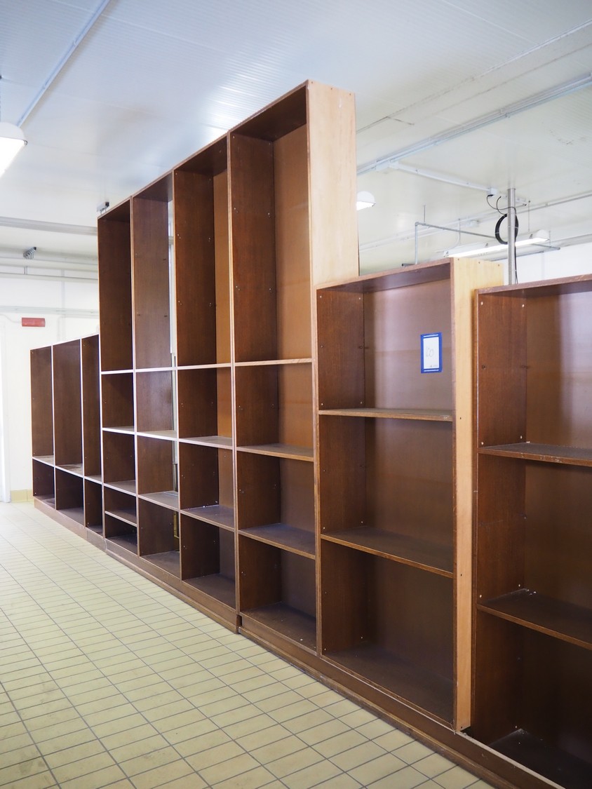 15 wooden cabinets, dimensions: (2x) 420 mm x 2300 mm x 1110 mm, (5x) 330 mm x 880 mm x 1970 mm, 330 mm x 780 mm x 1940 mm, (4x) 330 mm x 840 mm x 3050 mm, (2x) 420 mm x 1165 mm x 1970 mm, 420 mm x 600 mm x 1970 mm.
