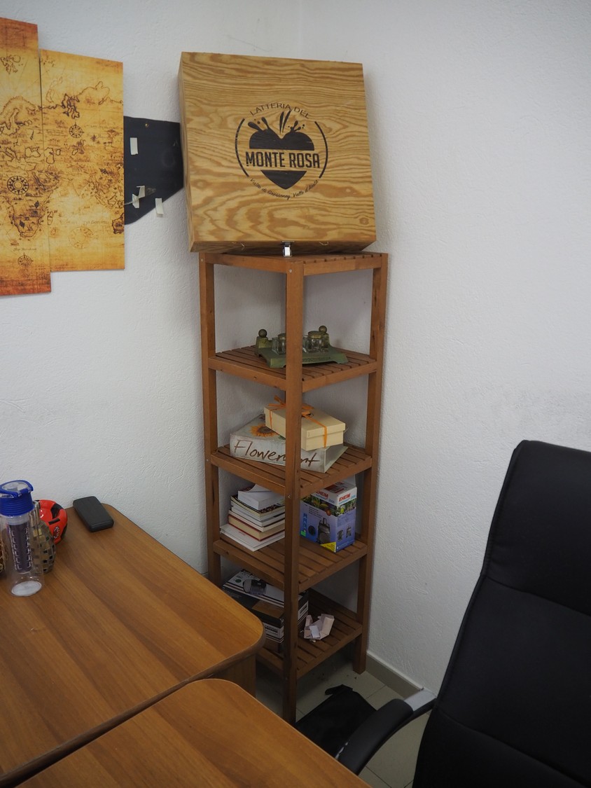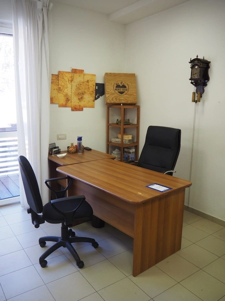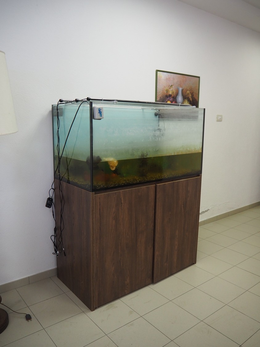 Office inventory consisting of 2 desks, dimensions: 1270 mm x 800 mm x 720 mm, 800 mm x 800 mm x 720 mm, 1 rack, dimensions: 370 mm x 370 mm x 1410 mm, 2 cabinets, dimensions: (2x) 520 mm x 500 mm x 2100 mm, 1 aquarium, dimensions: 670 mm x 1200 mm x 1600 mm, 2 chairs and 1 sofa, dimensions: 1800 mm x 800 mm x 800 mm.