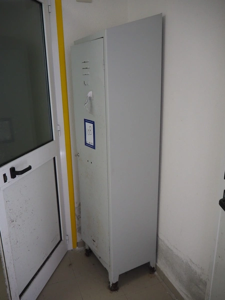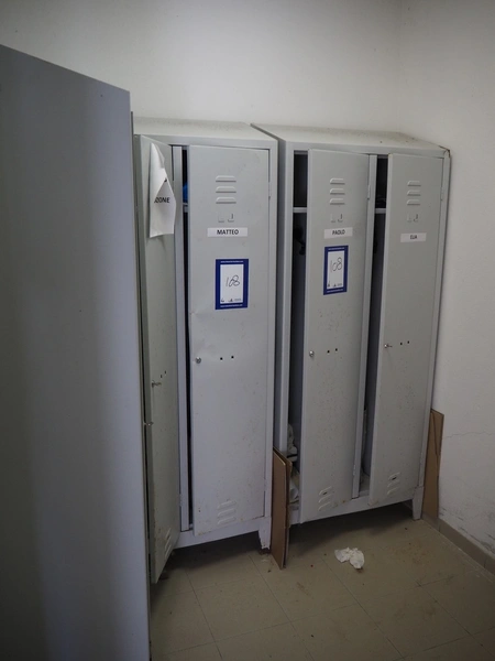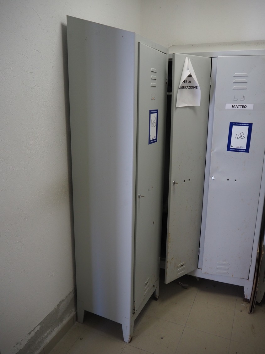 6 steel lockers, dimensions: (2x) 400 mm x 800 mm x 1900 mm, (4x) 400 mm x 500 mm x 1900 mm.