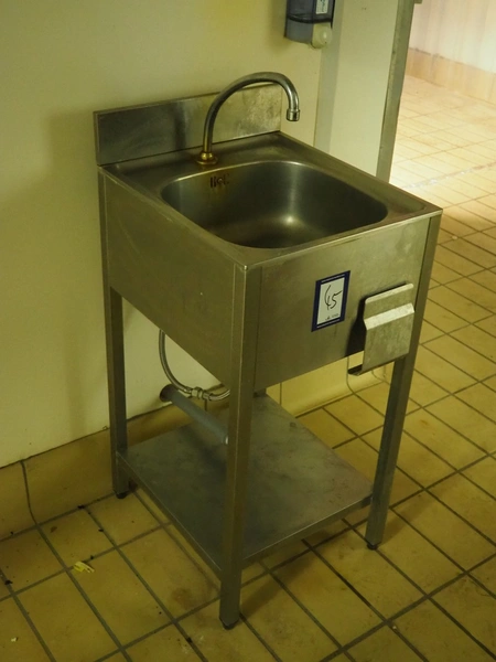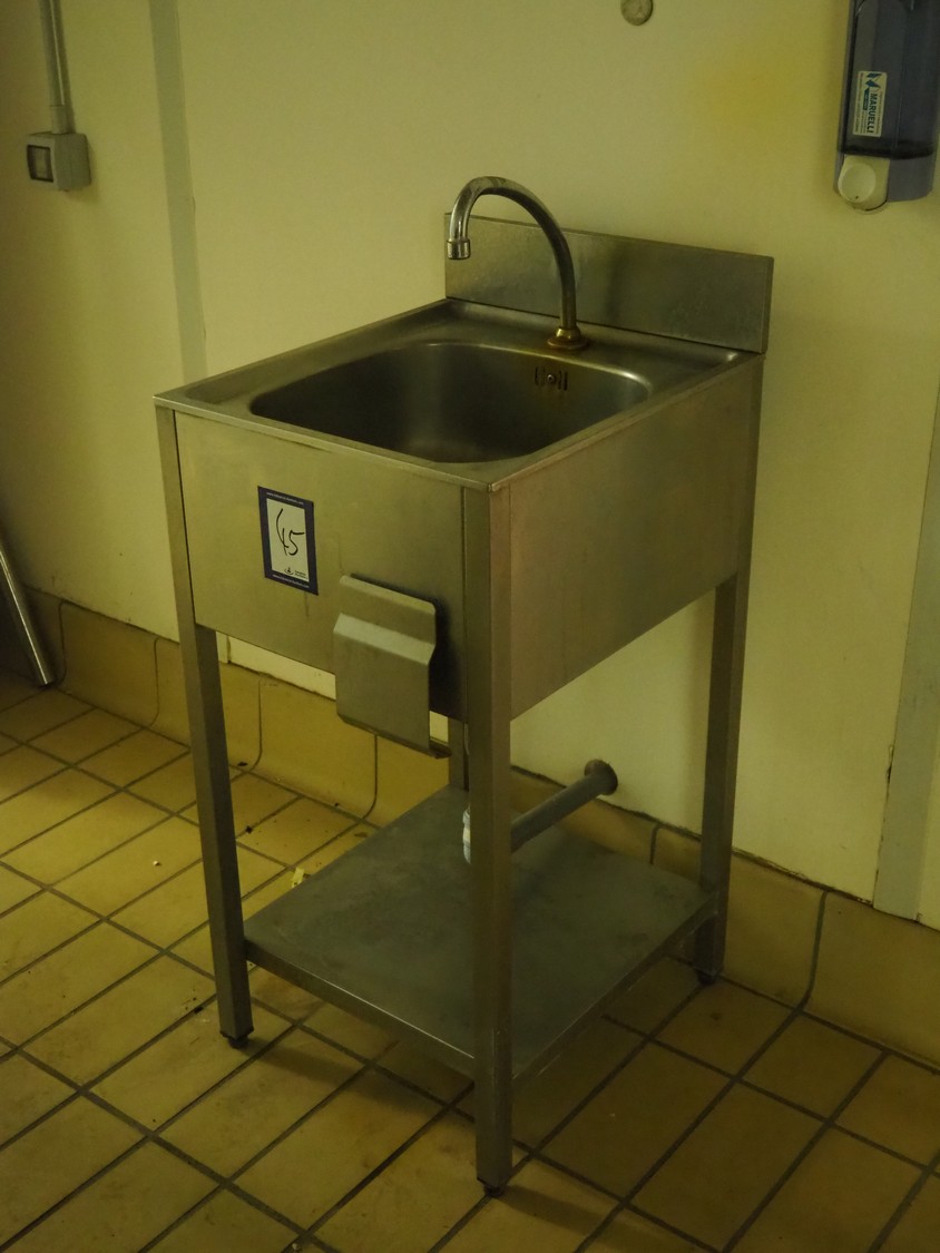 S/s sink, knee control, dimensions: 500 mm x 450 mm x 1100 mm.