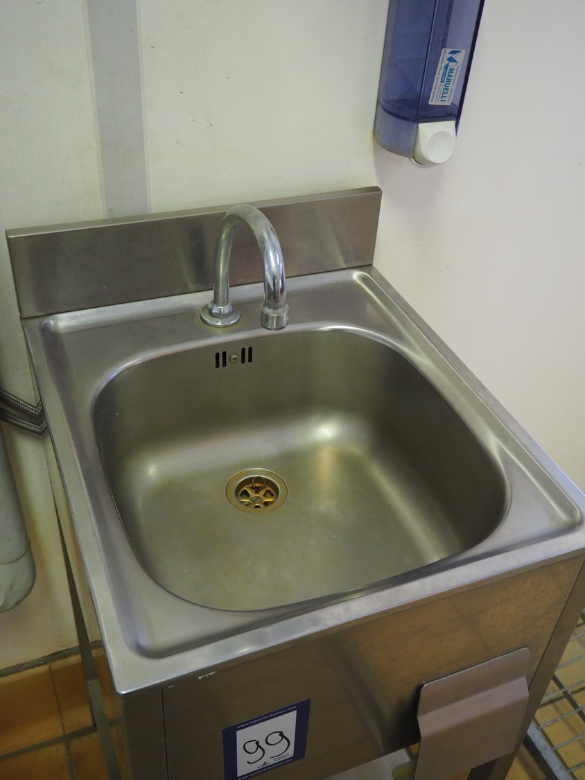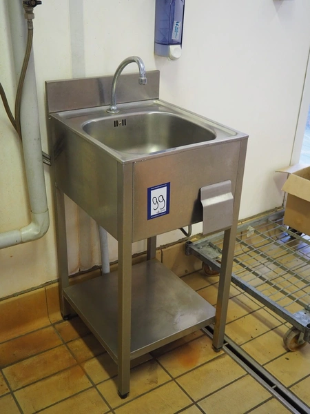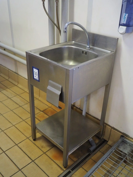 S/s sink, knee control, dimensions: 500 mm x 450 mm x 1100 mm.