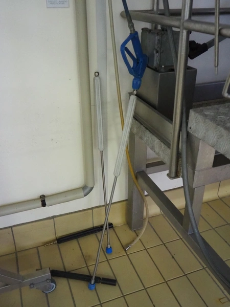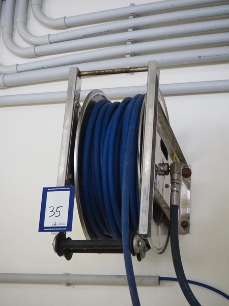 Faicom s/s hose reel with plastic hose and spray pistol, dimensions: 500 mm x 200 mm x 500 mm.