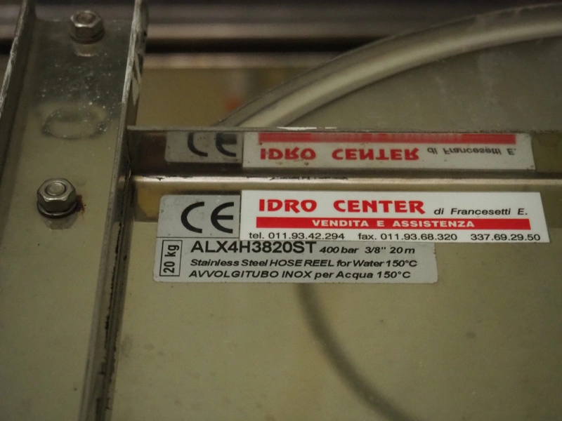 Faicom s/s hose reel with plastic hose, type: ALX4H3820ST, dimensions: 500 mm x 200 mm x 500 mm.