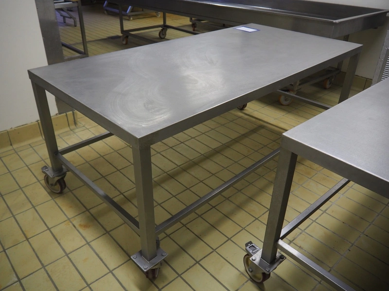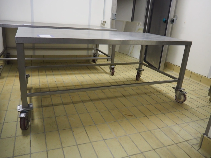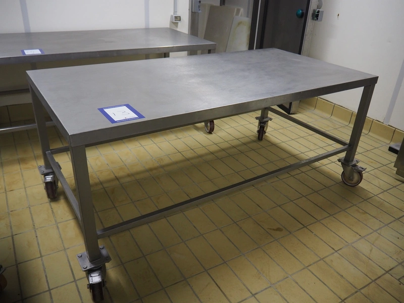 Mobile s/s table, dimensions: 1000 mm x 2000 mm x 850 mm.