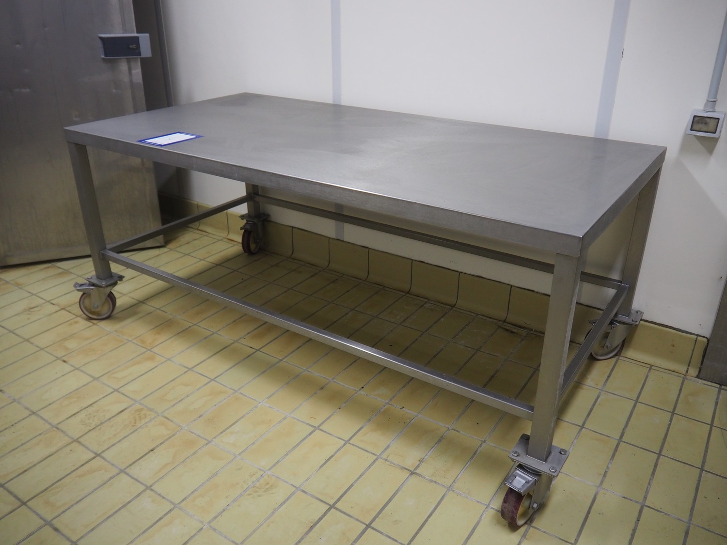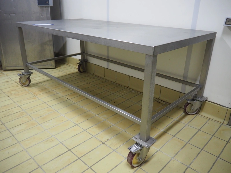 Mobile s/s table, dimensions: 1000 mm x 2000 mm x 850 mm.