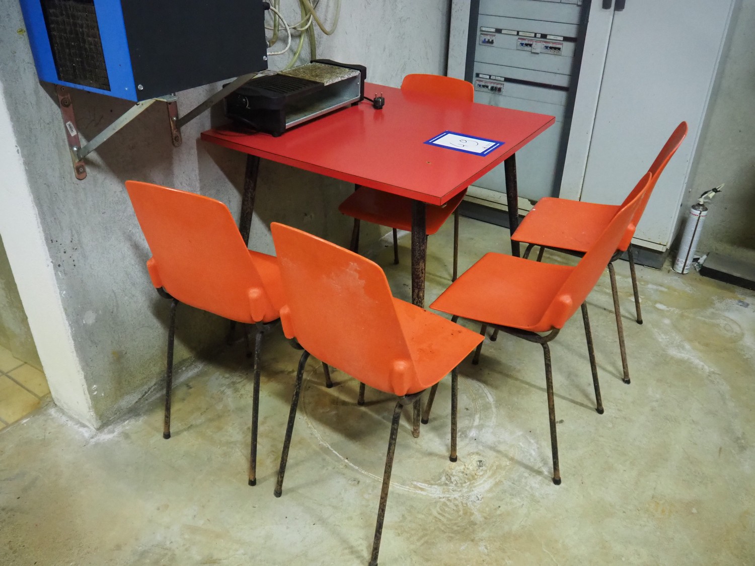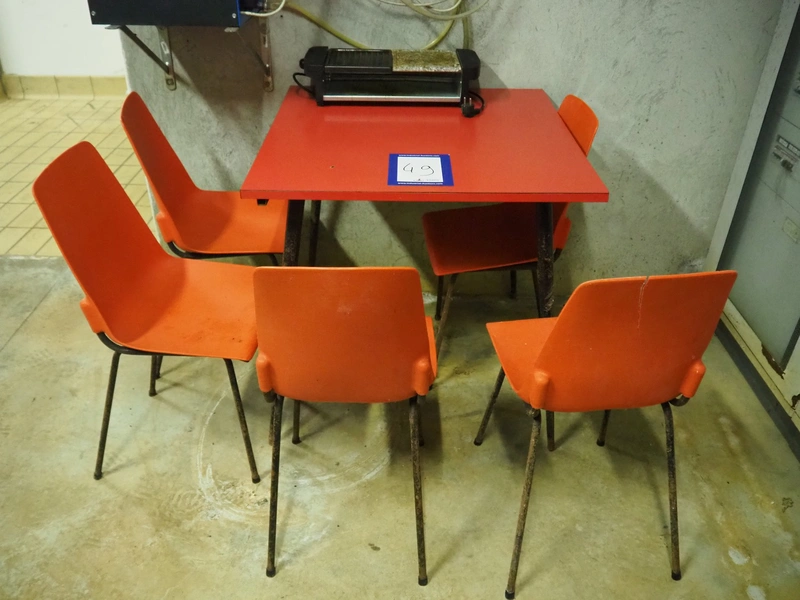 Table with 5 chairs, dimensions table: 780 mm x 780 mm x 770 mm.