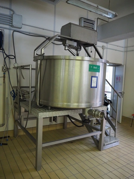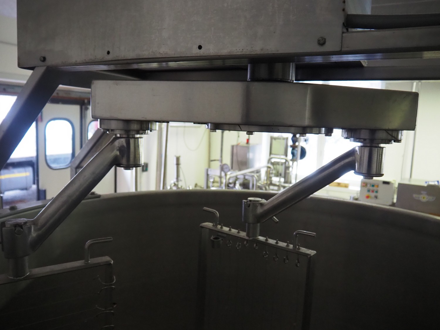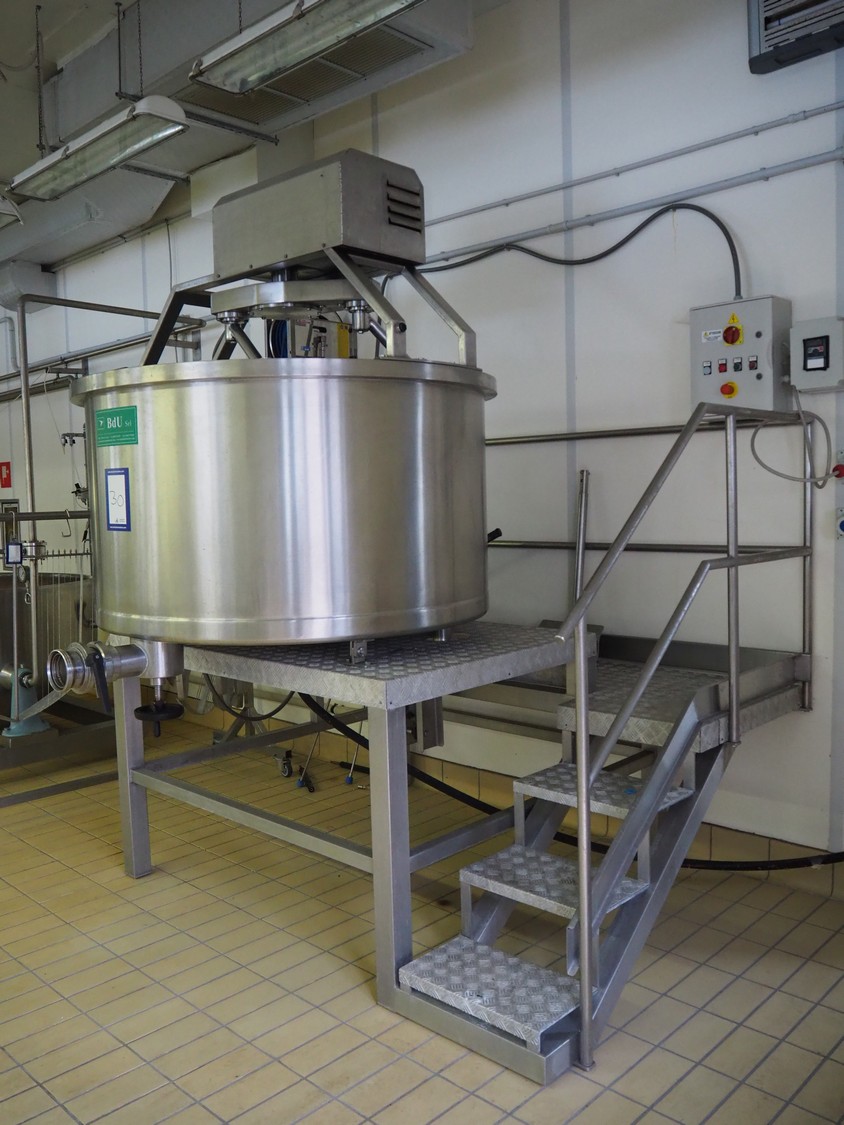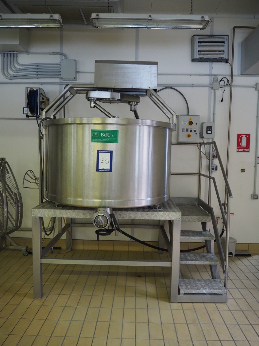 BdU Srl s/s tank with 2 agitators on s/s platform, inside dimensions: ø 1400 mm x 770 mm, total dimensions: 2300 mm x 2300 mm x 2600 mm.