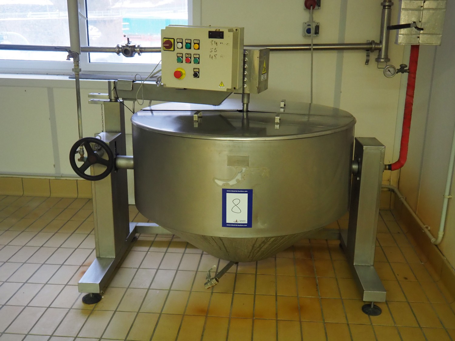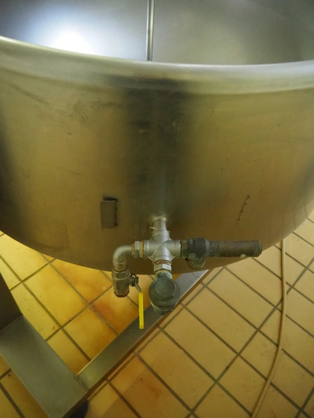 S/s double jacketed curd tank, type: LT 600, serial number: NF 7693, year of construction: 2010, volume: 600 litres, inside dimensions: ø 1200 mm x 900 mm, total dimensions: 1300 mm x 1600 mm x 1600 mm. Including extra mixing arm.