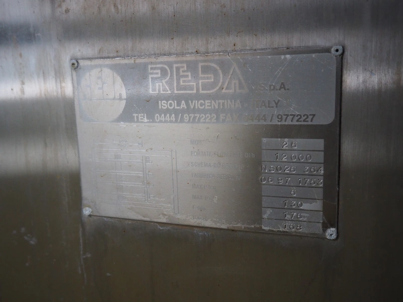 Reda S.p.A. s/s heat exchanger, model: 26, serial number: 06.97 1753, dimensions: 750 mm x 500 mm x 1600 mm.