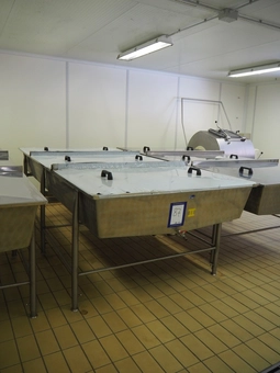 Mobile s/s tub with sieve, inside dimensions: 2000 mm x 1000 mm x 350 mm, total dimensions: 2100 mm x 1100 mm x 800 mm.€ 350,000 bids16/03/2026 14:50 -