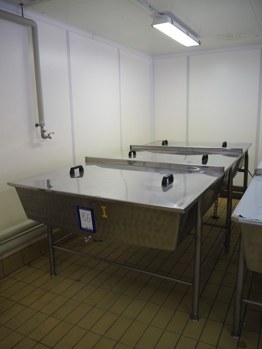 S/s tub with 3 lids, inside dimensions: 3000 mm x 1400 mm x 300 mm, total dimensions: 3100 mm x 1460 mm x 1100 mm.