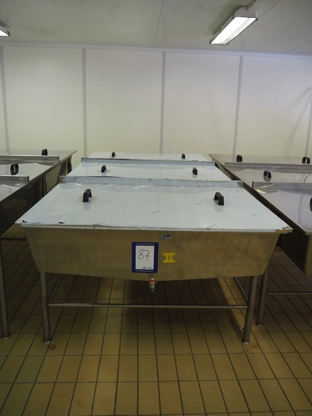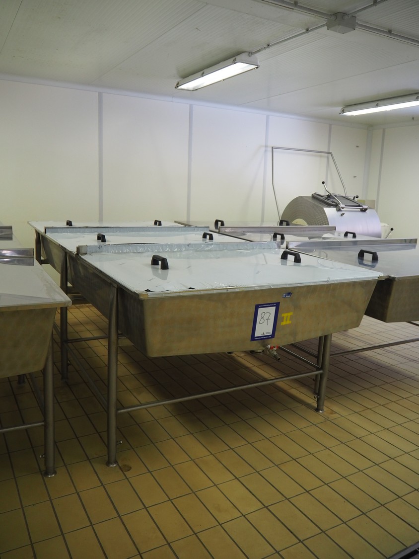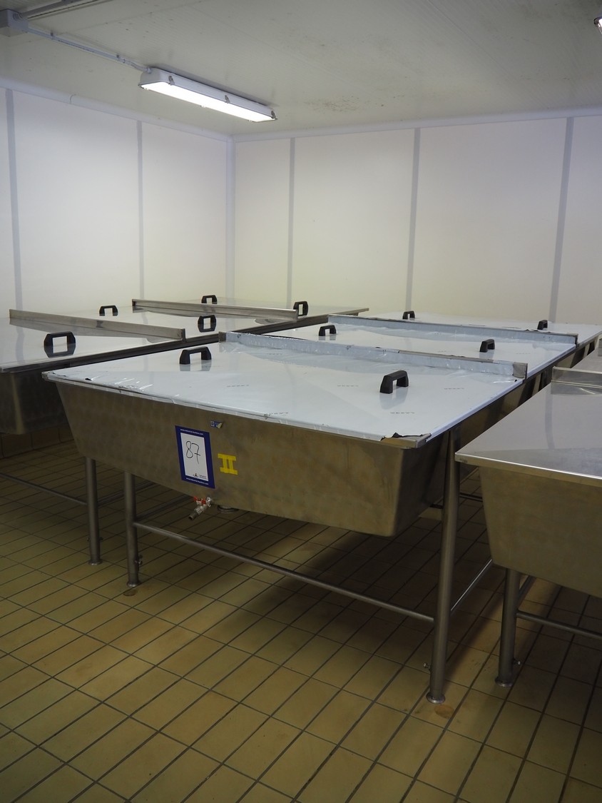 S/s tub with 3 lids, inside dimensions: 3000 mm x 1400 mm x 300 mm, total dimensions: 3100 mm x 1460 mm x 1100 mm.