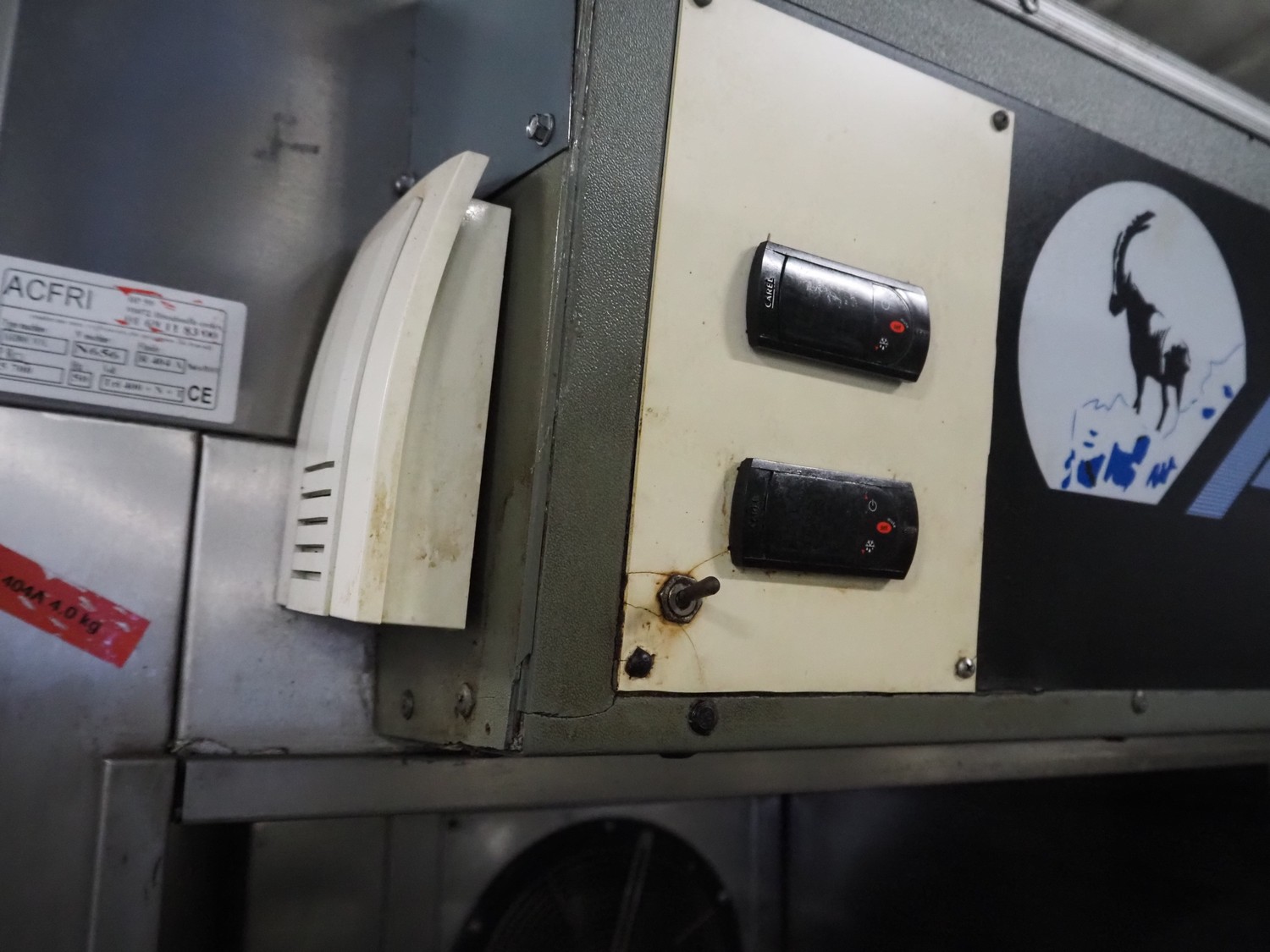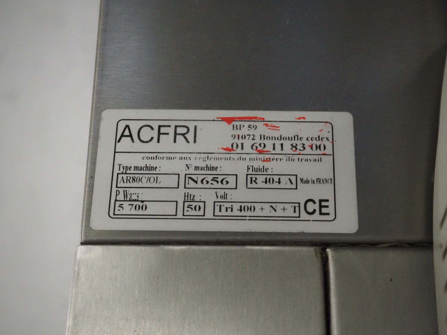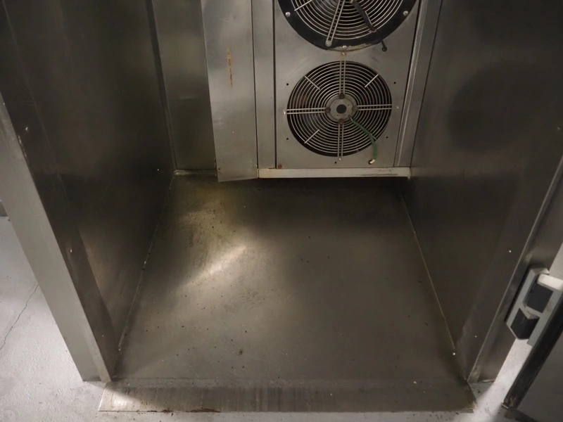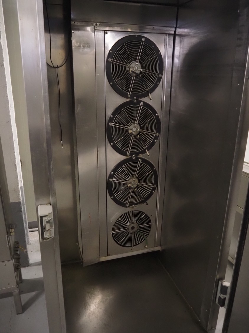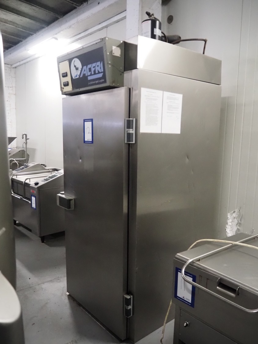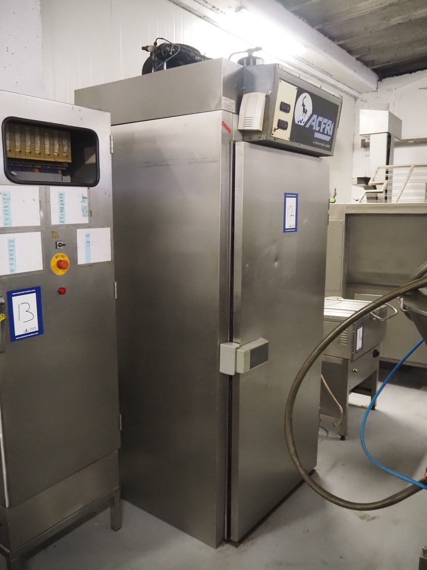 ACFRI blast chiller, type: AR80C/OL, number: N656, 400 V, 50 Hz, refrigerant: R 404 A, inside dimensions: 850 mm x 630 mm x 1880 mm, total dimensions: 1050 mm x 1120 mm x 2600 mm.