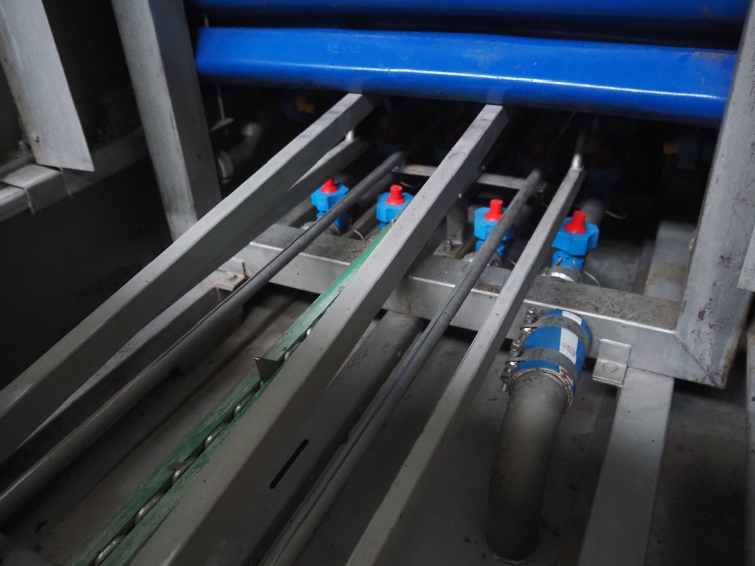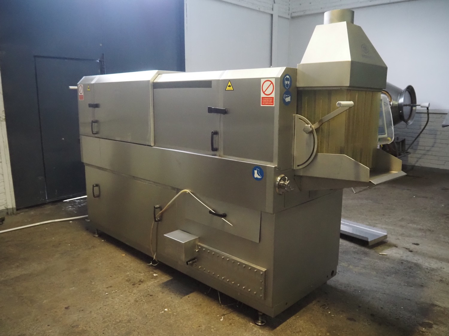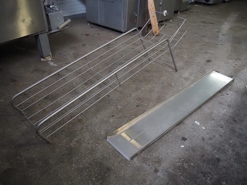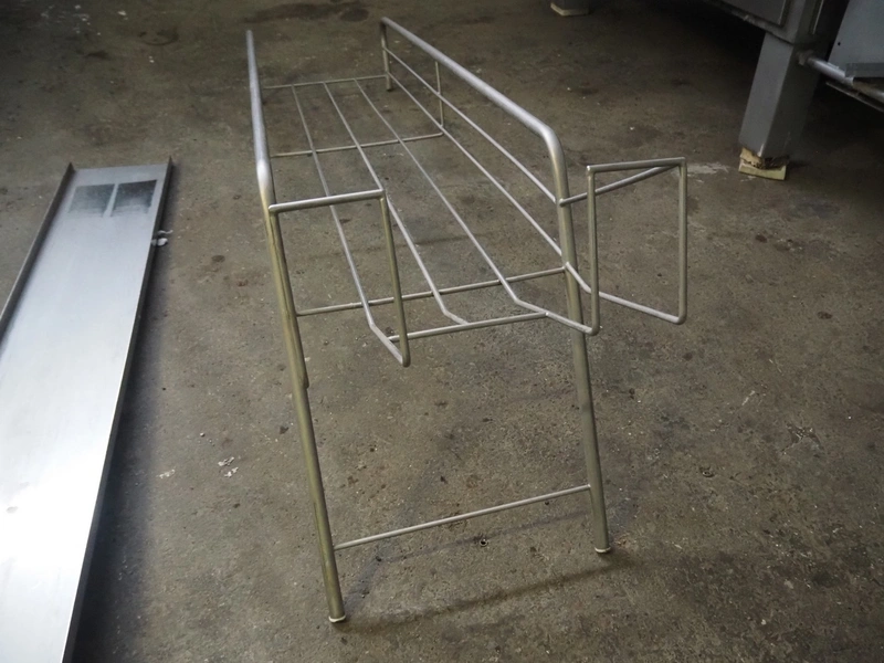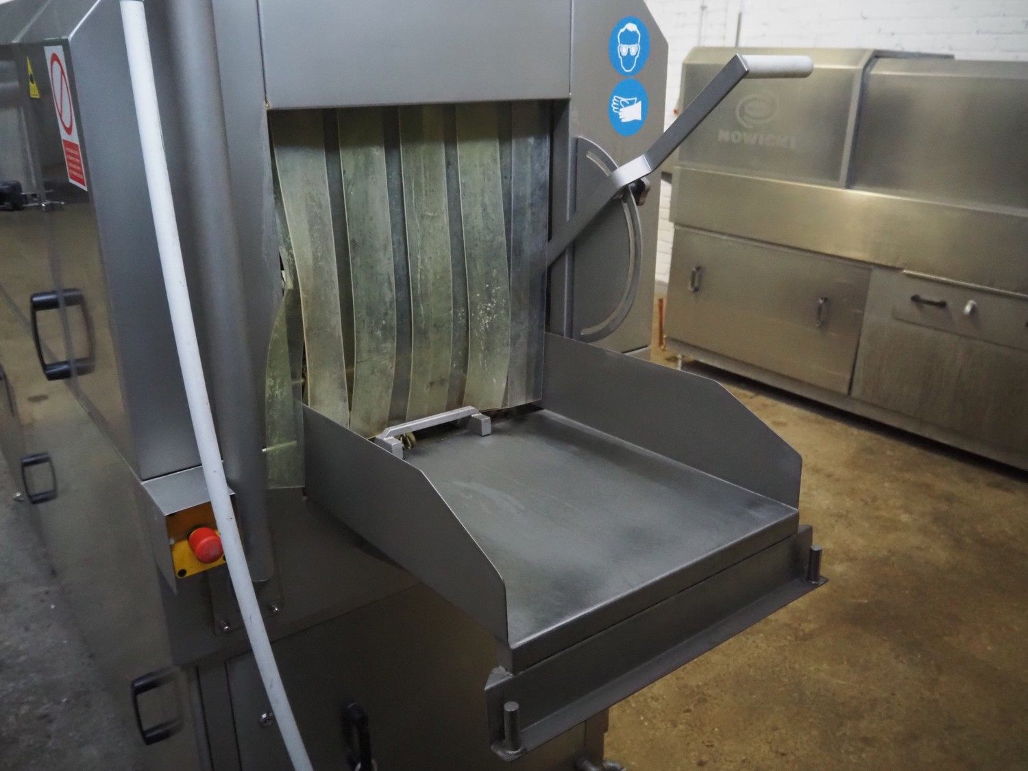 Nowicki crate washer, type: MP-300 W, number: 95810113, year of construction: 2010, 400 V, 3 Ph, 50 Hz, 12 A, 6 kW, weight: 600 kg, clearance: 480 mm x 200 mm, total dimensions: 3700 mm x 1100 mm x 2100 mm. Including s/s frame, dimensions: 2300 mm x 550 mm x 1000 mm.