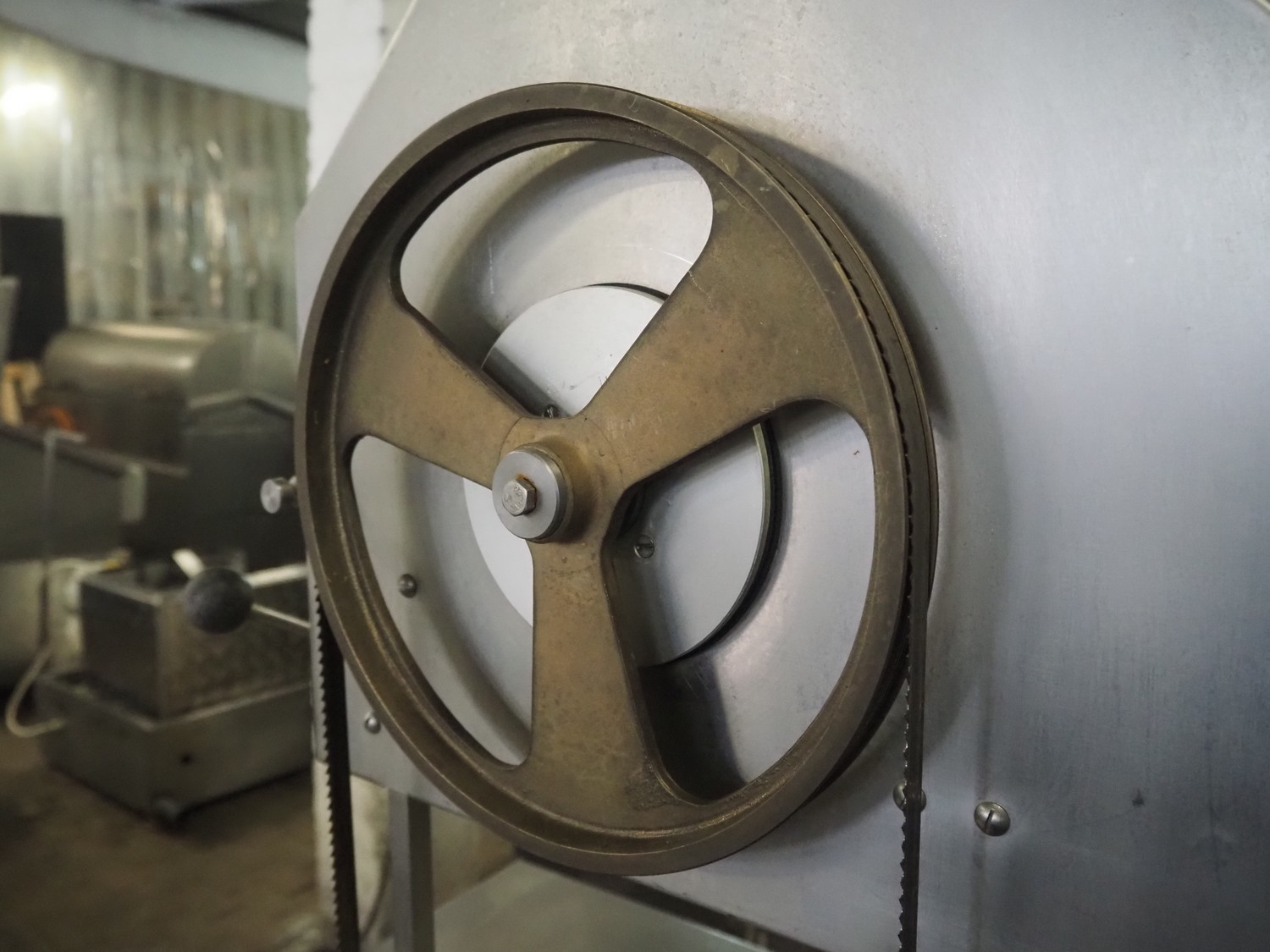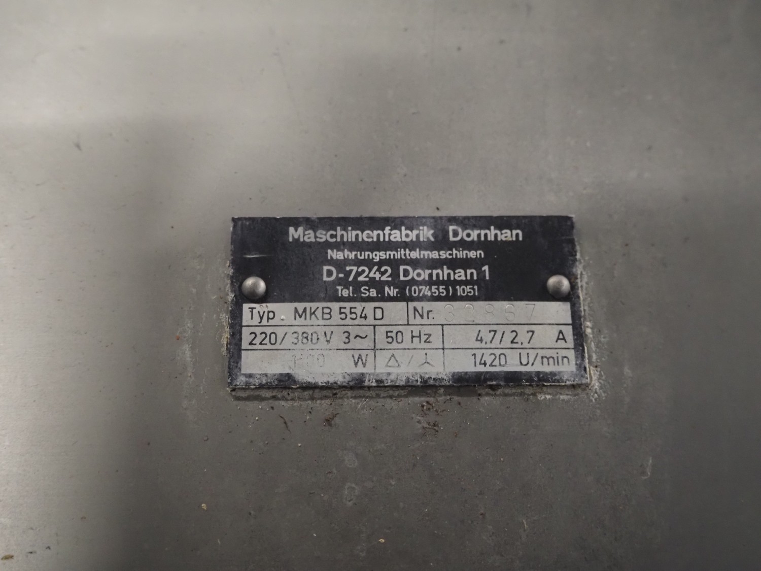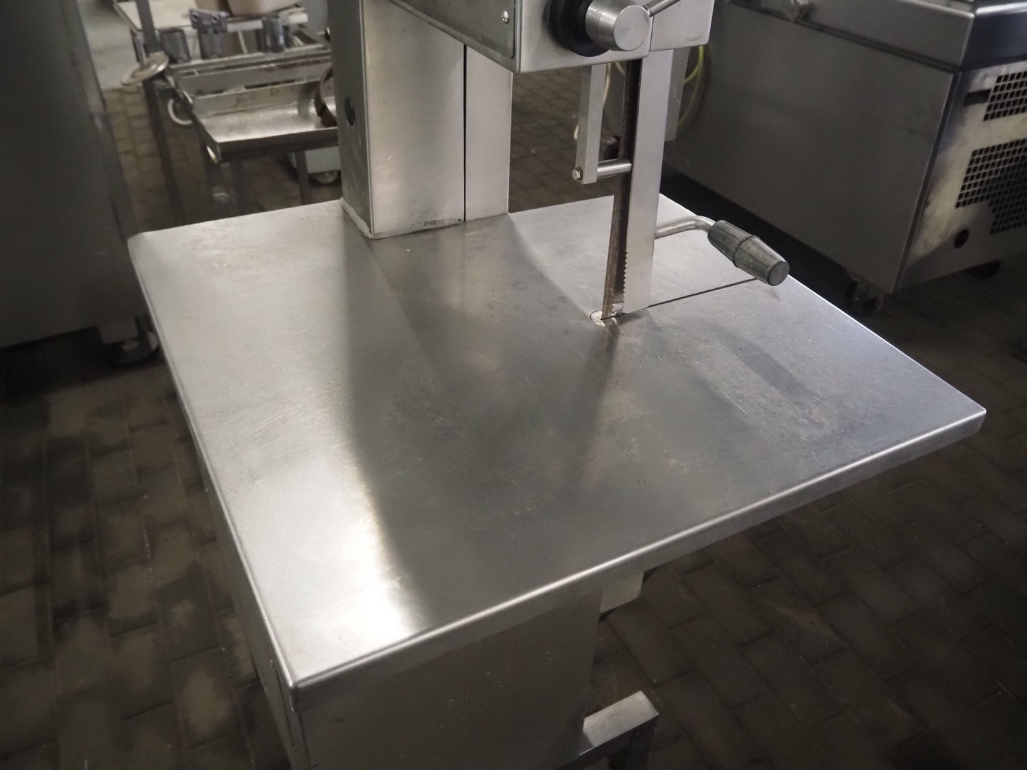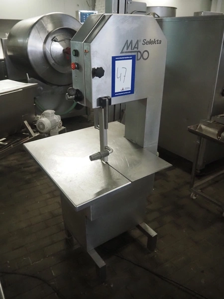 Mado bandsaw, type: MKB 554 D, number: 32867, 220/380 V, 3 Ph, 50 Hz, 4.7/2.7 A, 1100 W, table dimensions: 720 mm x 720 mm, total dimensions: 720 mm x 720 mm x 1600 mm.