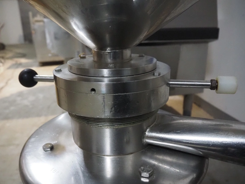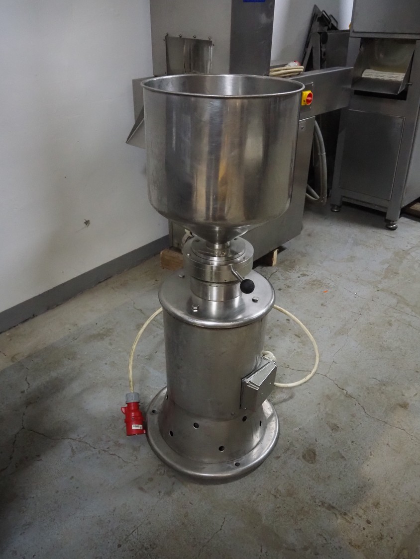 S/s colloid mill, inside dimensions: Ø 400 mm x 400 mm, total dimensions: 700 mm x 500 mm x 1220 mm.
