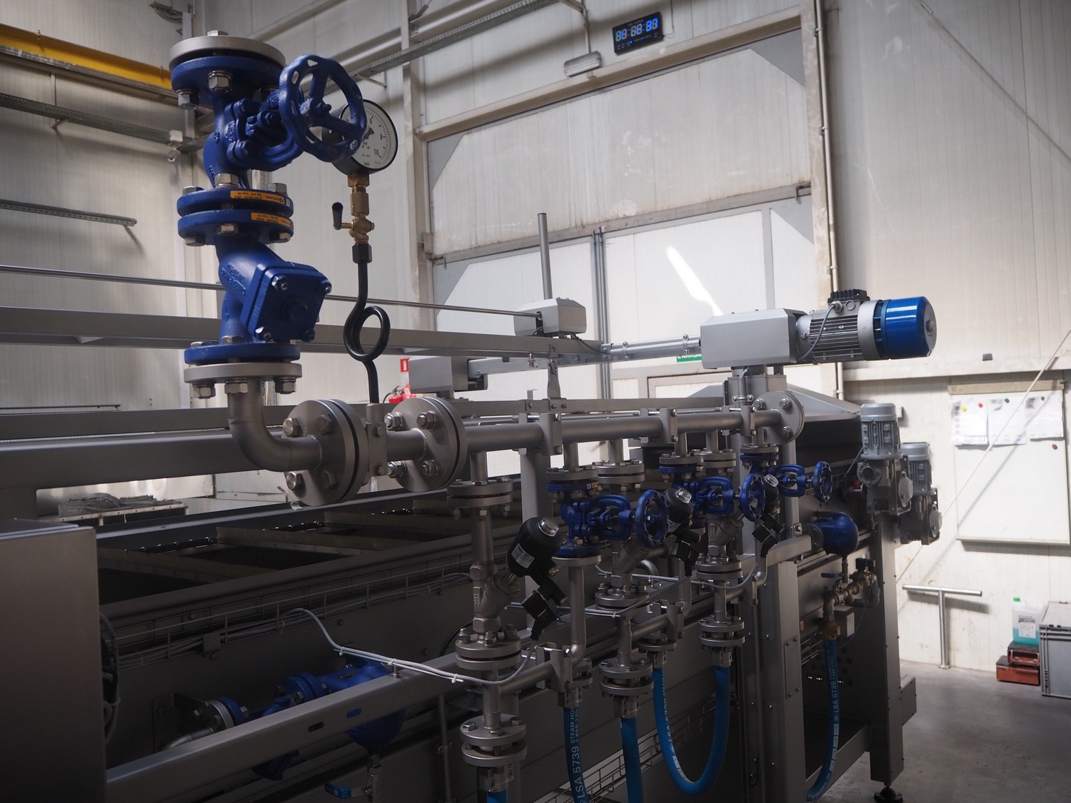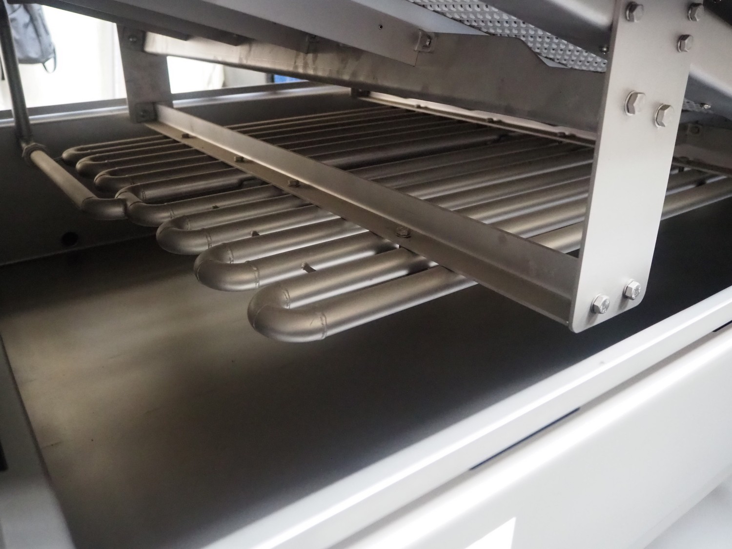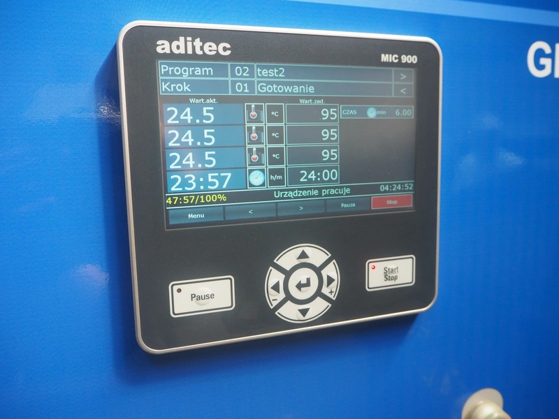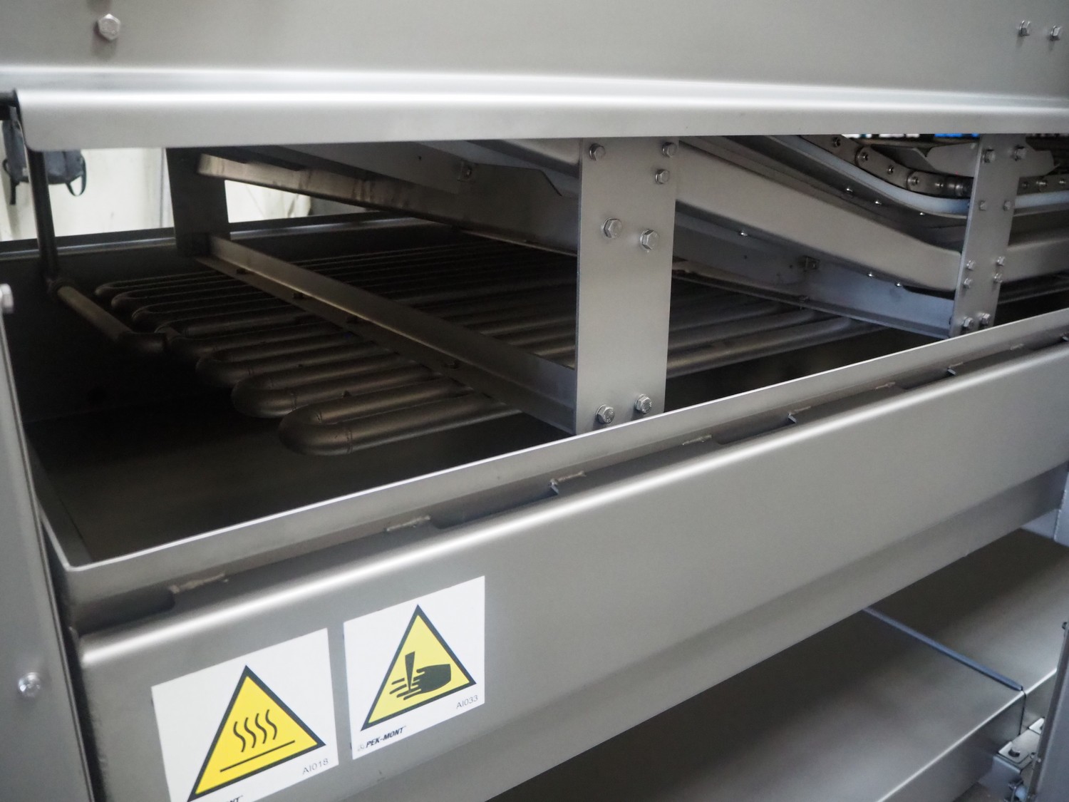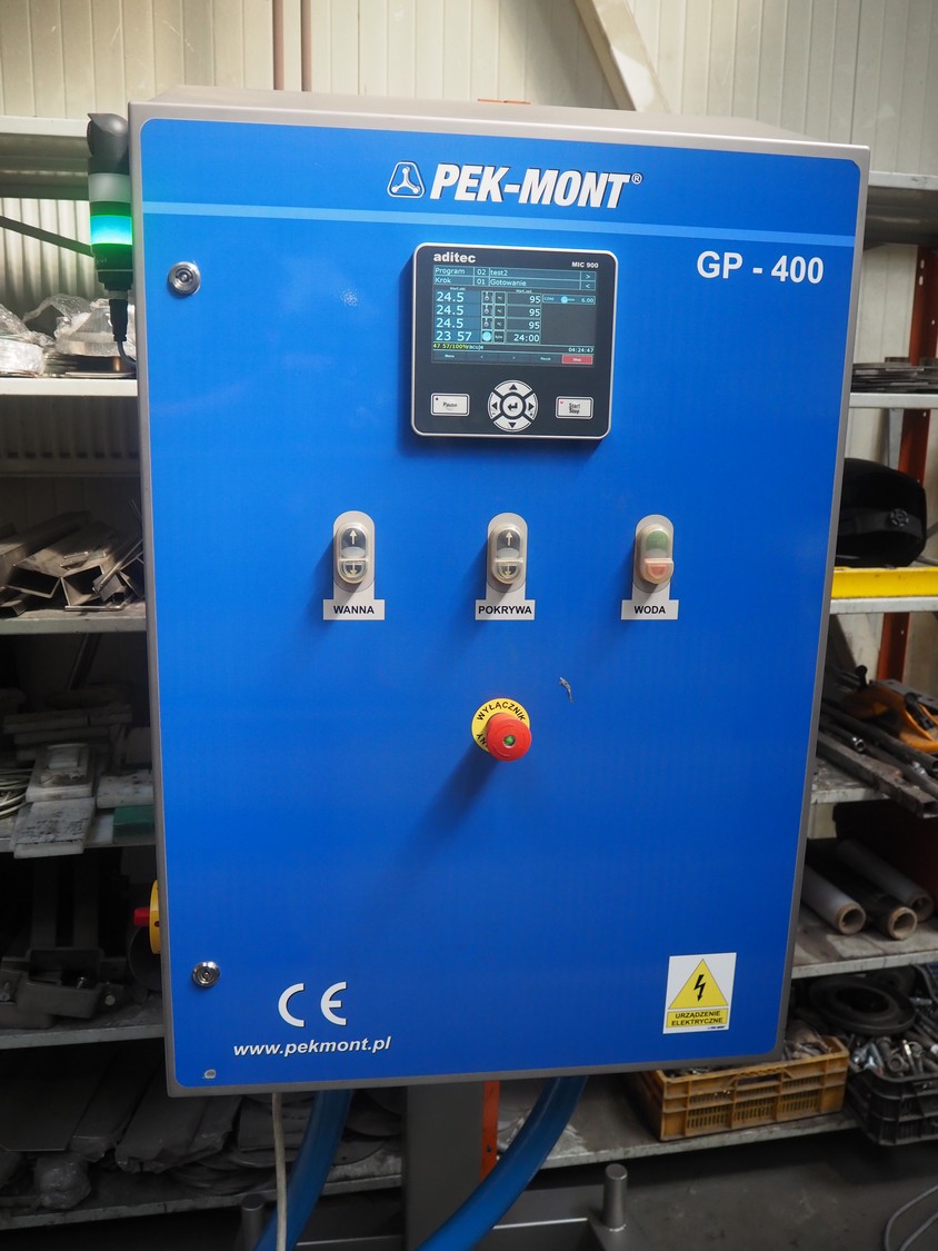 Pek-Mont belt cooker, type: GP-400, number: 11, year of construction: 2019, 400 V, steam heated, plastic mesh belt, belt width: 950 mm, dimensions belt cooker: 6600 mm x 1900 mm x 2550 mm, dimensions switch cabinet: 900 mm x 700 mm x 1880 mm. Never used.