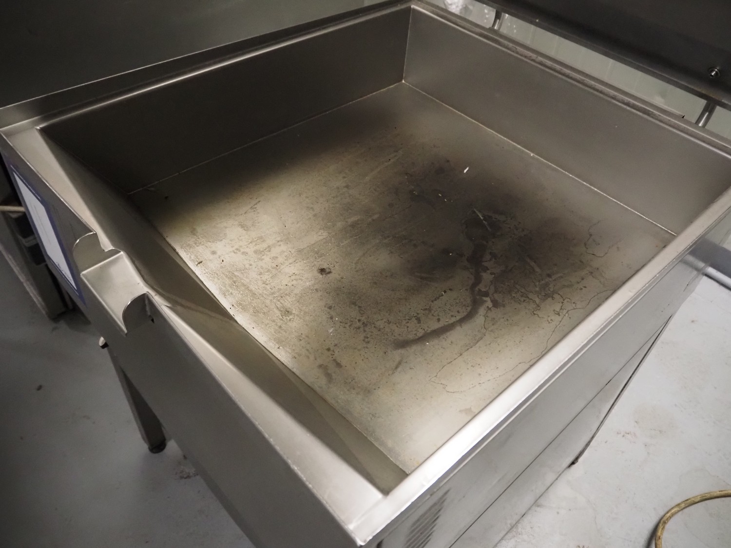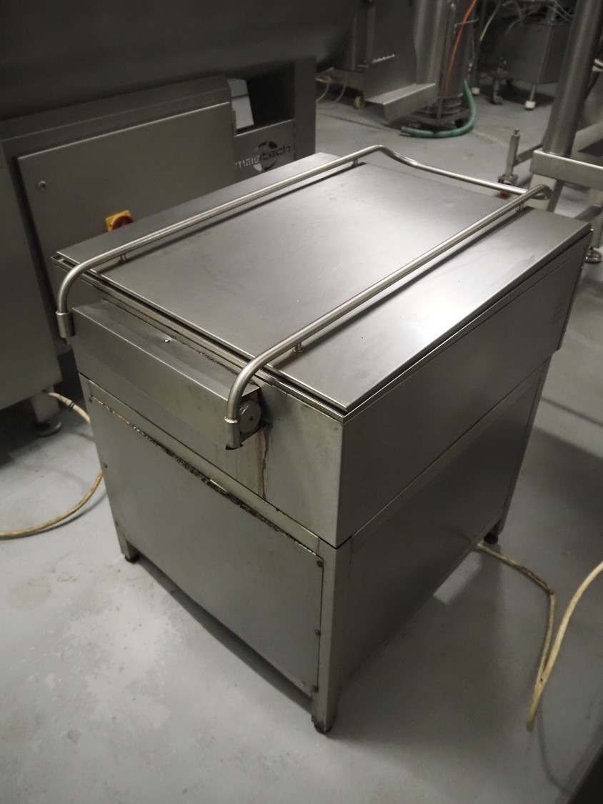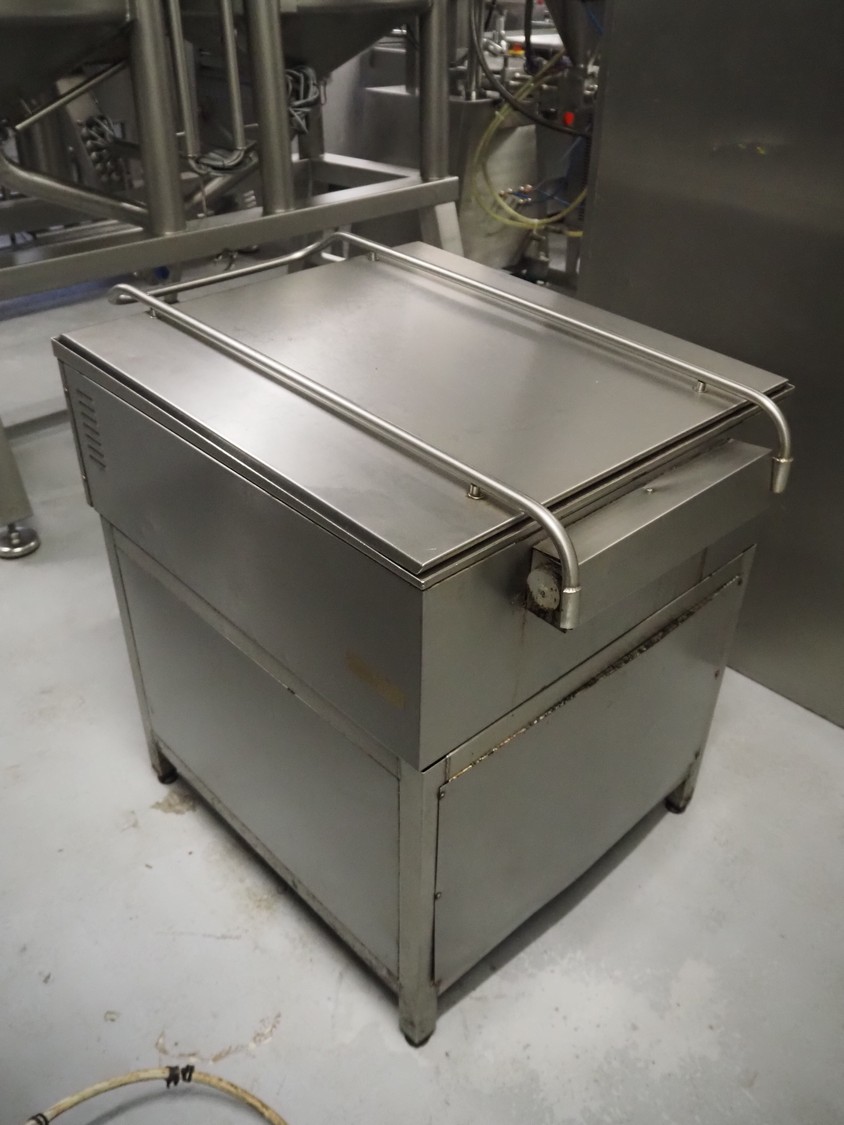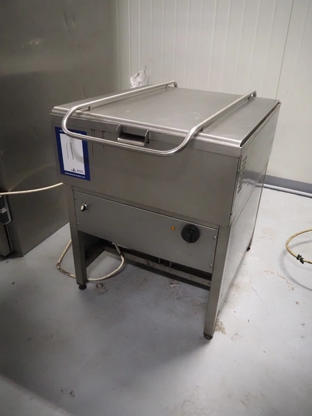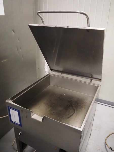 S/s braising pan, inside dimensions: 670 mm x 720 mm x 160 mm, total dimensions: 730 mm x 1030 mm x 950 mm.