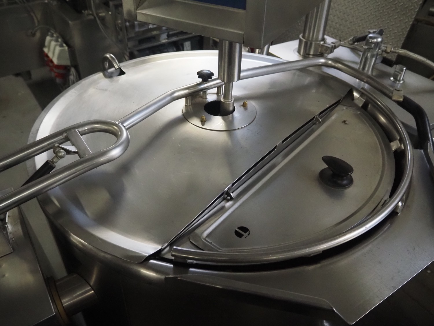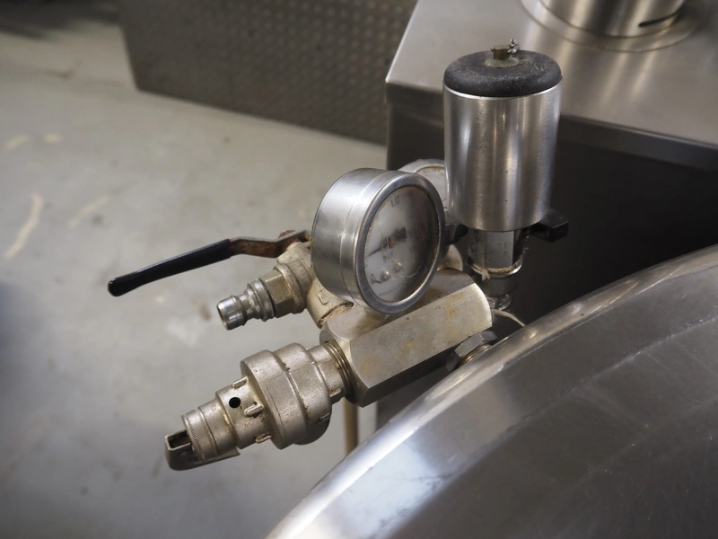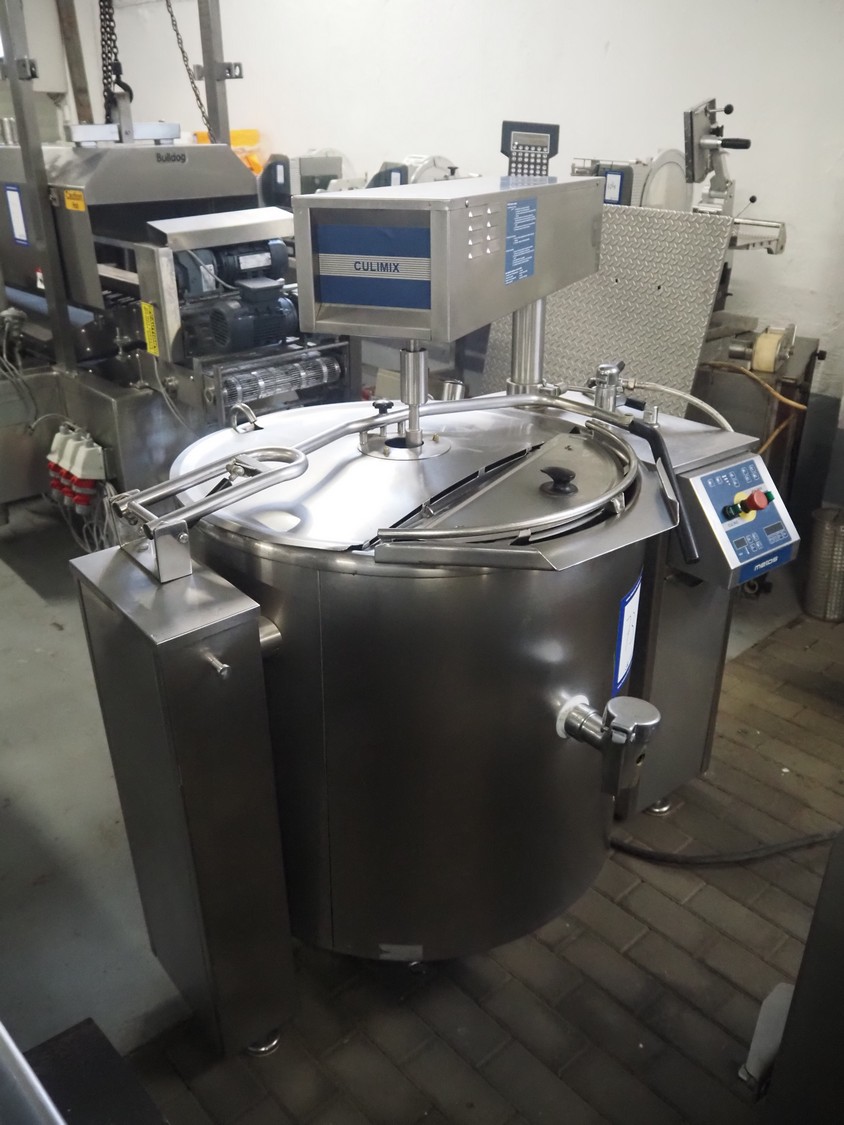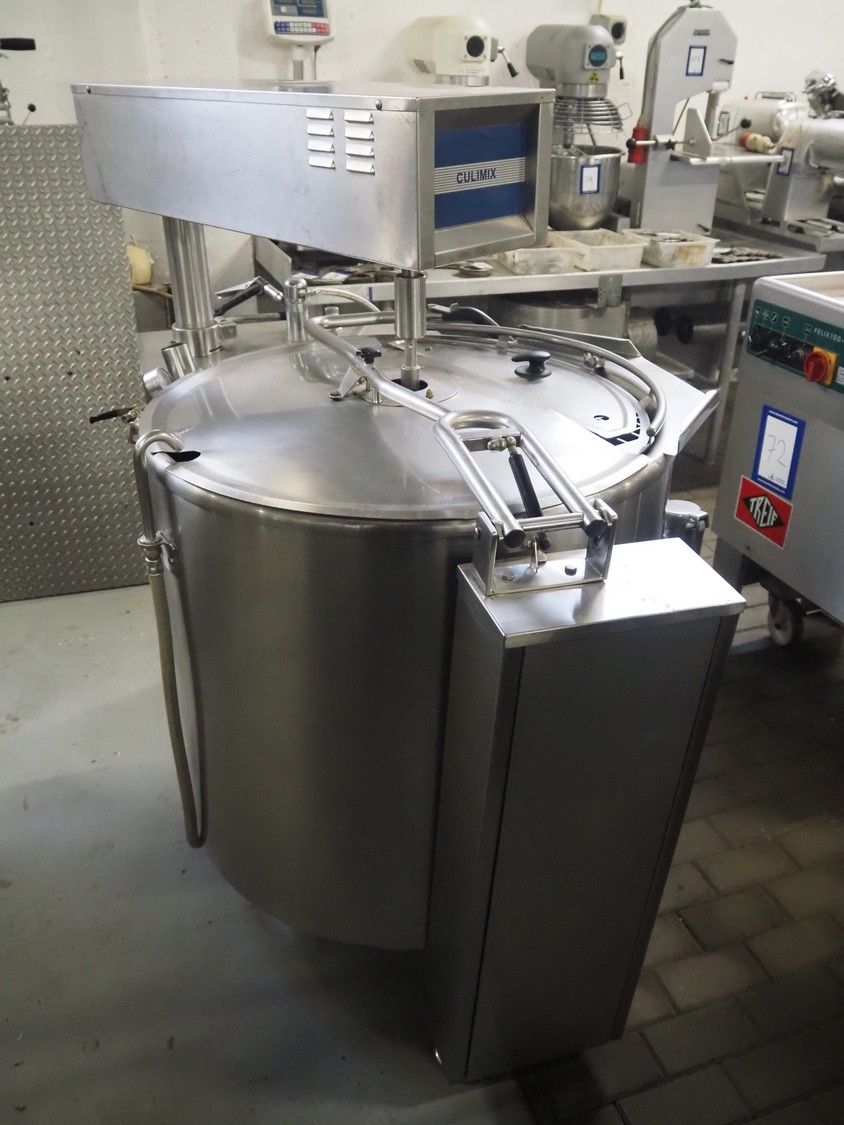 Metos cooking vessel with agitator, type: CULINO / CULIMIX, inside dimensions: Ø 750 mm x 500 mm, total dimensions: 1400 mm x 1000 mm x 1400 mm.