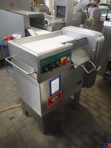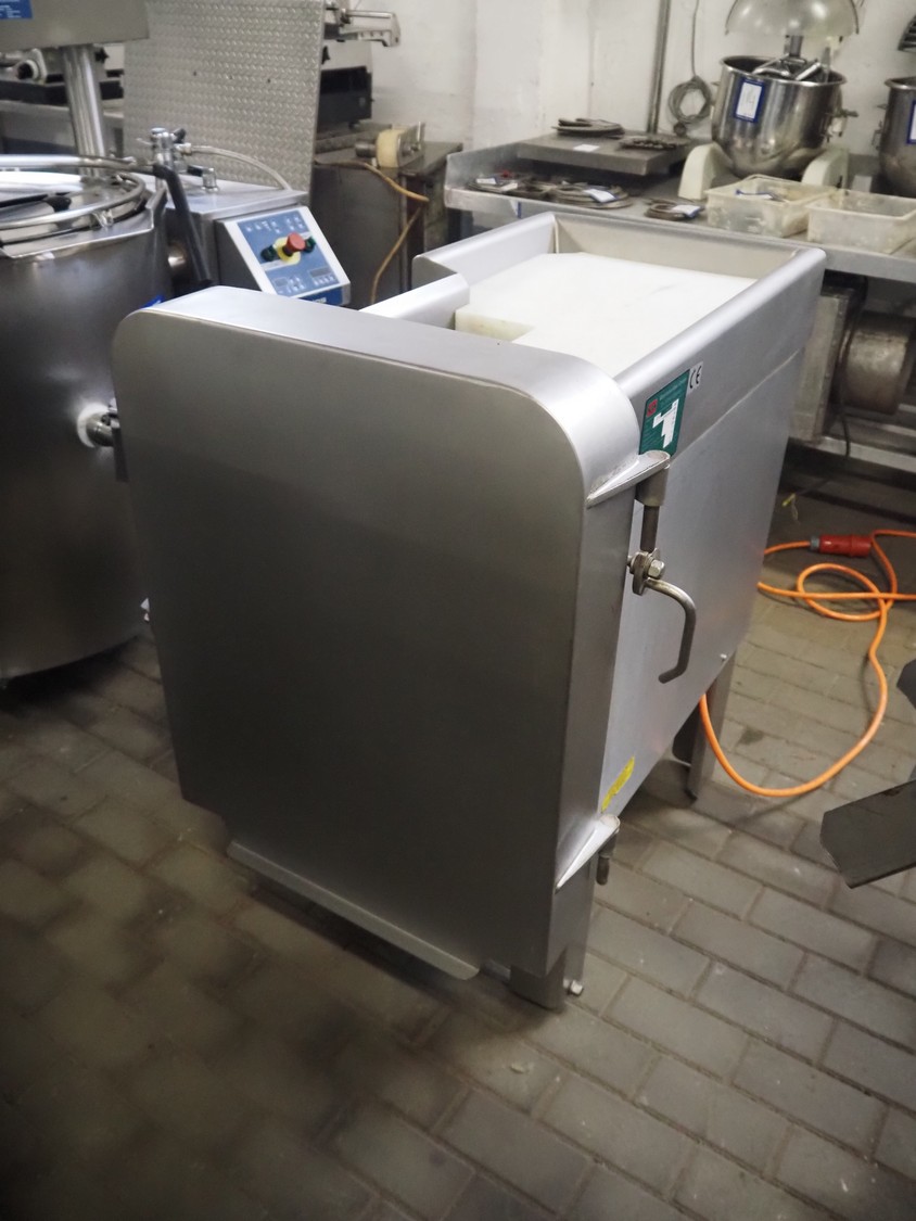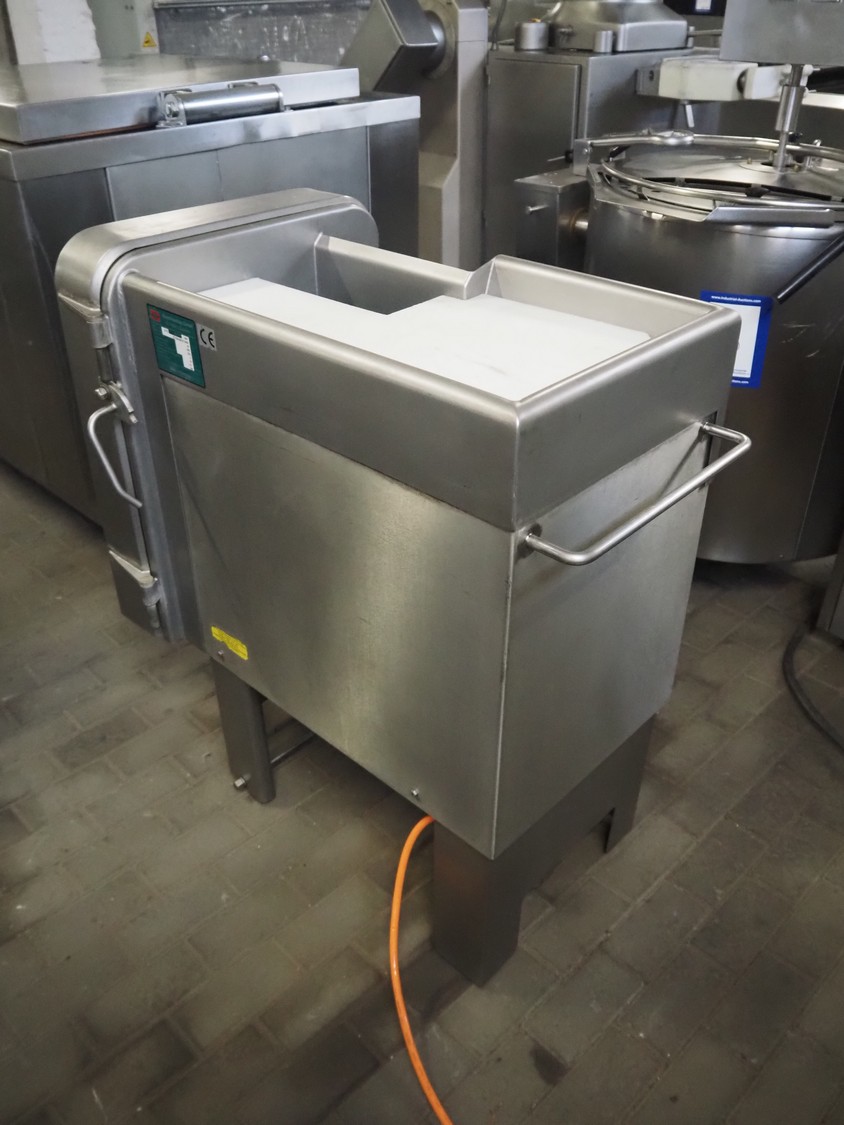 Treif Maschinenbau GmbH mobile dicer, type: 2710, machine number: 271000.6870.0456, year of construction: 1997, 400/230 V, 50 Hz, 3/10 A, 1.0 kW, weight: 180 kg, chamber: 90 mm x 90 mm, total dimensions: 950 mm x 700 mm x 1060 mm.